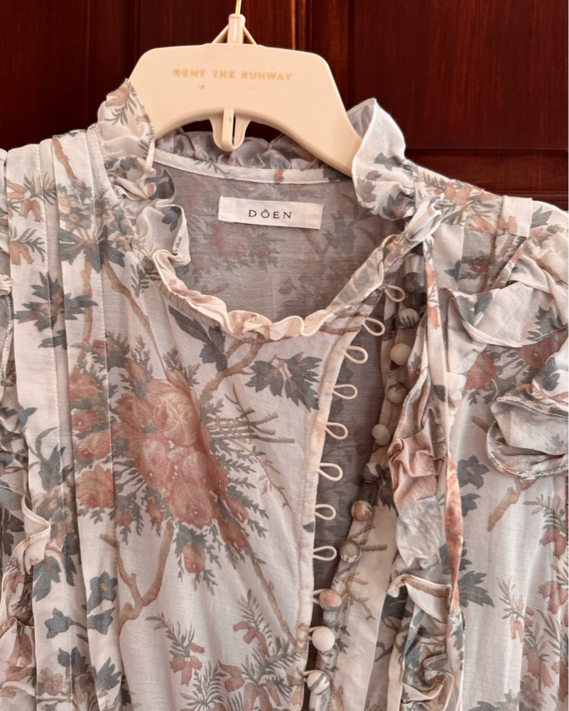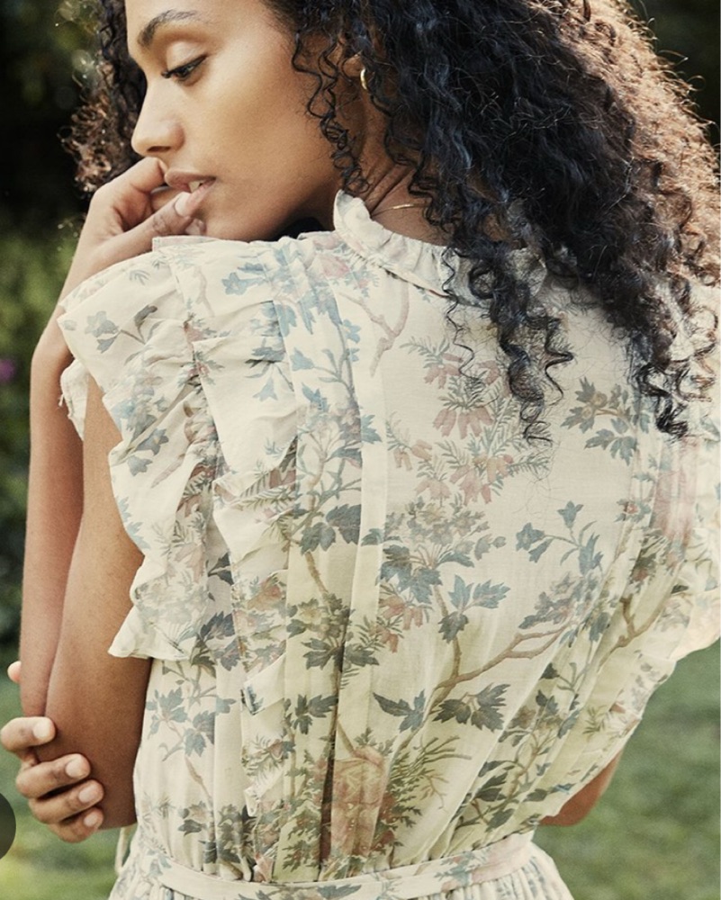 This dreamy floral dress is perfect for a spring wedding or garden party. The delicate, flowing silhouette and romantic ruffles create a whimsical, feminine look.
