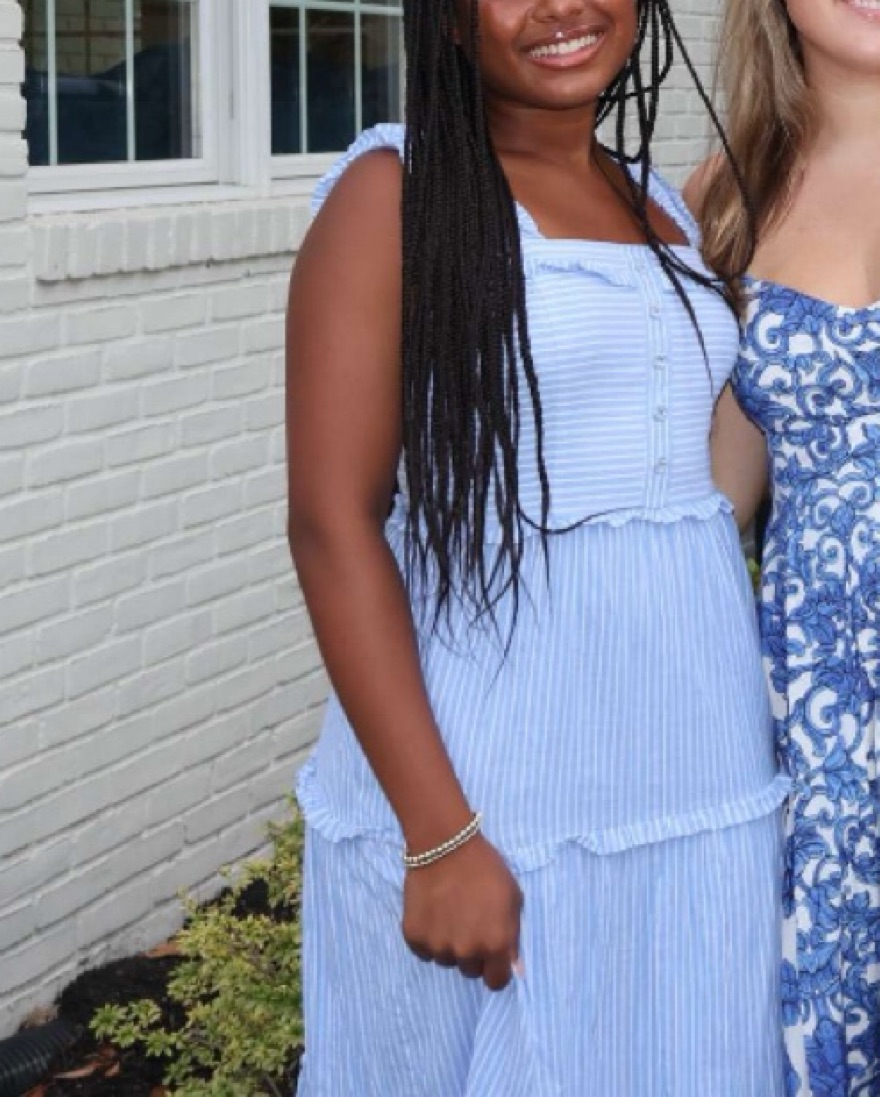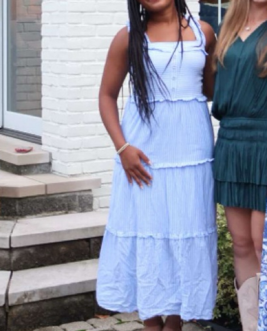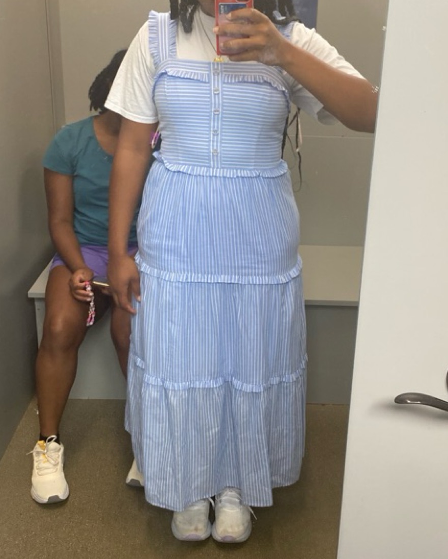 Elegant and feminine, this striped tiered maxi dress is perfect for a summer garden party or outdoor wedding.