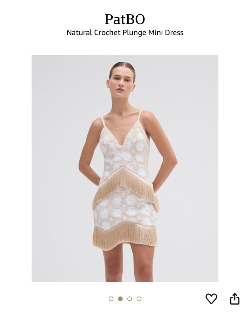 PatBo Natural Crochet Plunge Mini Dress