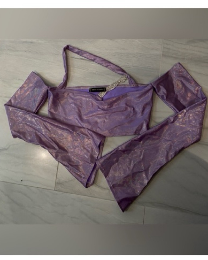 Shay Kawaii Trumpet Purple Holographic Long Sleeve Top