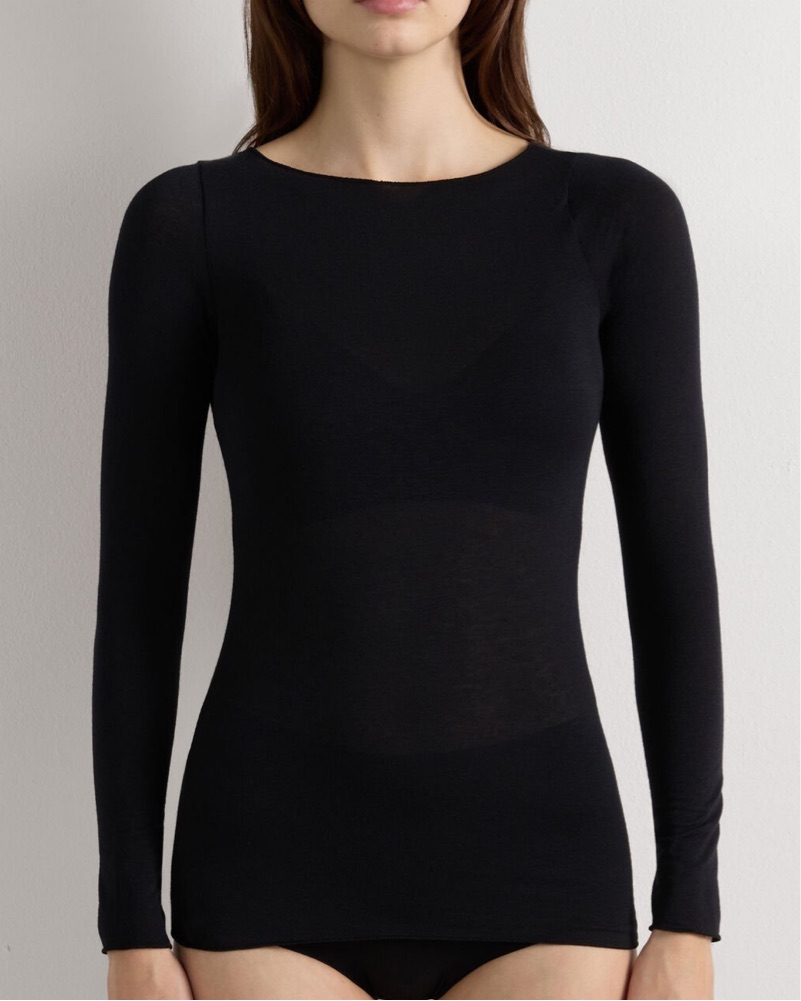Black Intimissimi Cashmere Boat Neck Top by Intimissimi - Pickle