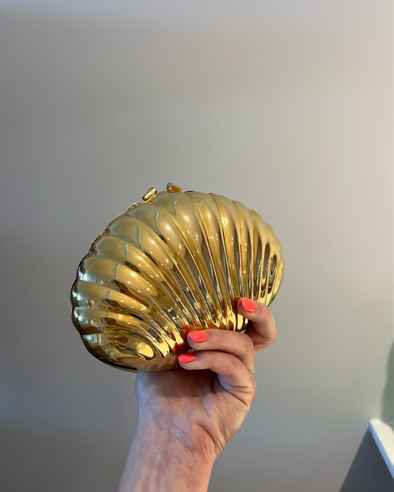 Vintage gold shell clutch. Gold chain strap can be added. Super unique and always complimented