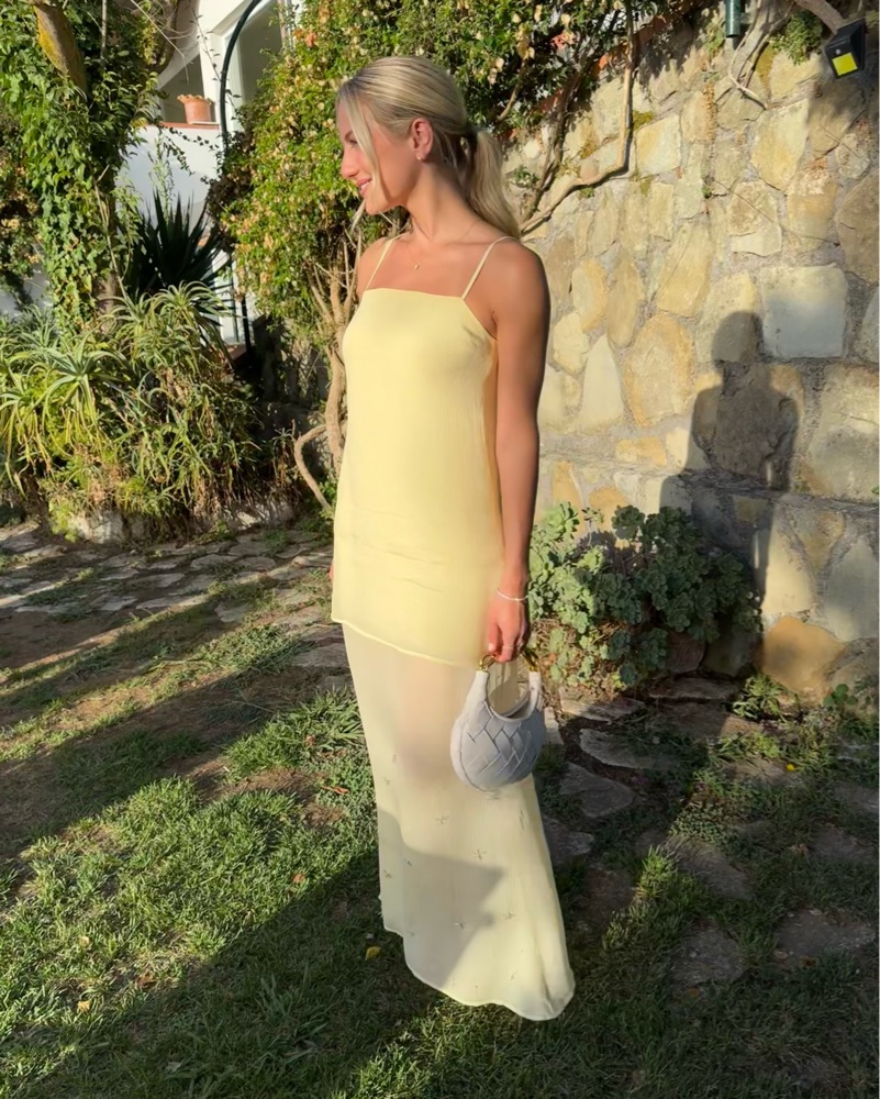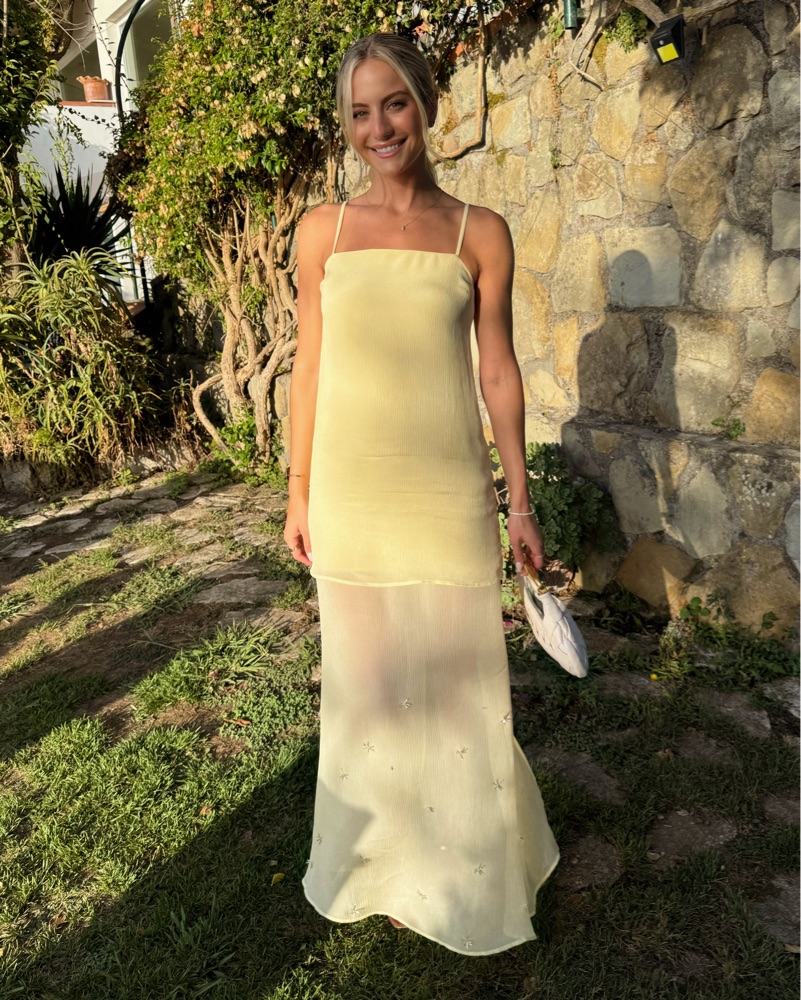 So obsessed with this dress and sold out almost everywhere. I did get the top taken out a little bit since it’s an XS, I’m a 32B and it fit perfectly. Such a fun wedding guest dress!