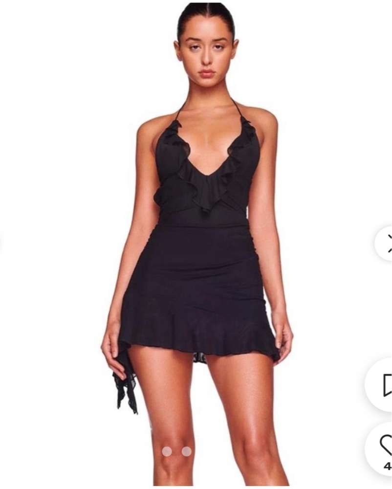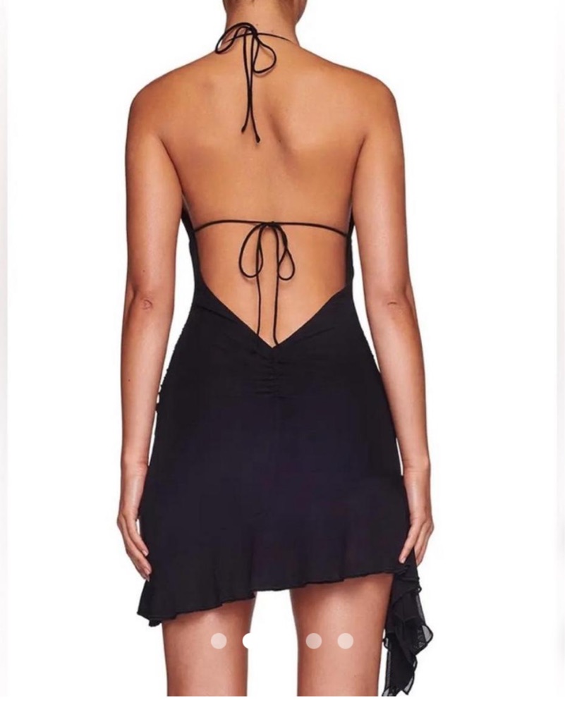 Dress is soft comfortable and stretchy. It is a mini dress that ties on the back, it’s perfect for a night out or a birthday.