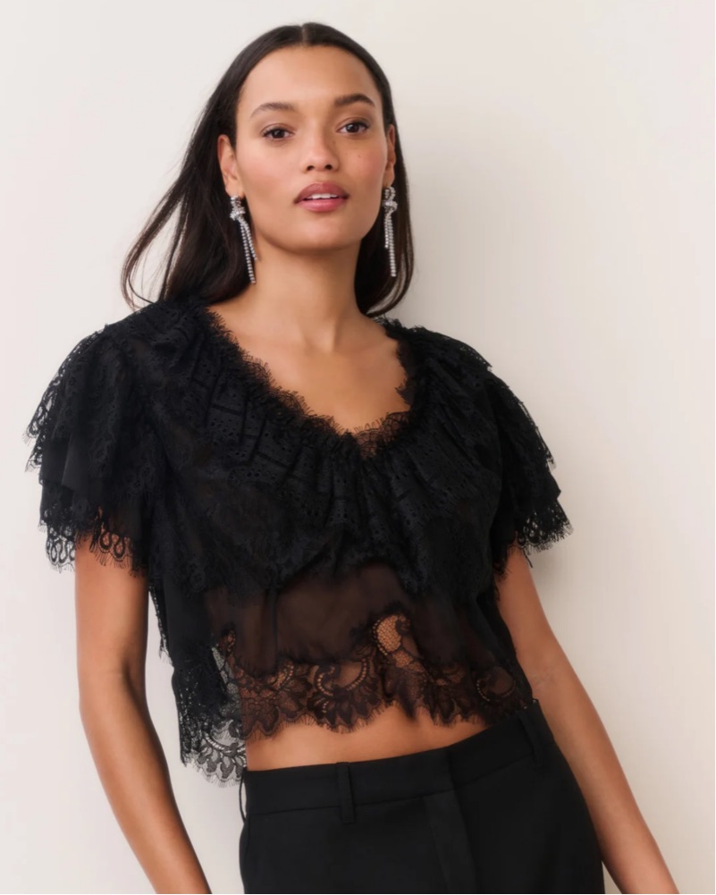 Loveshackfancy Lace and Ruffle Crop Top by LoveShackFancy - Pickle