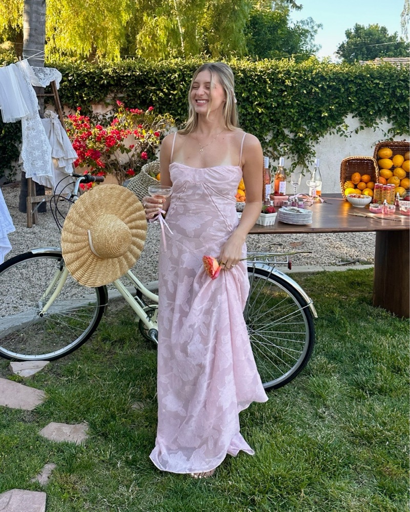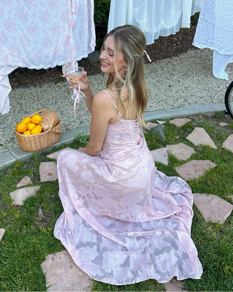 This floral maxi dress is perfect for a summer garden party or evening event. The soft, flowing fabric and delicate floral pattern create a beautiful, feminine look.