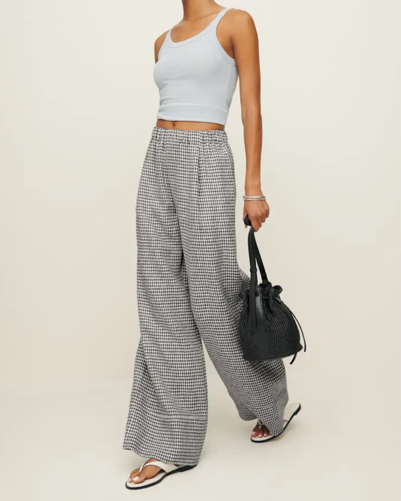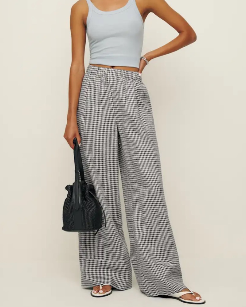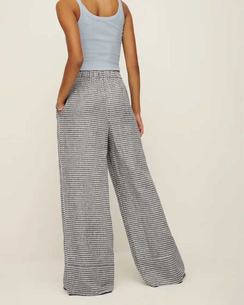 This classic black and white gingham print palazzo pant is perfect for a chic weekend brunch or a fun summer day. The wide-leg pants provide a flattering, flowy silhouette while the cropped tank top keeps the look casual and breezy. Perfect condition.