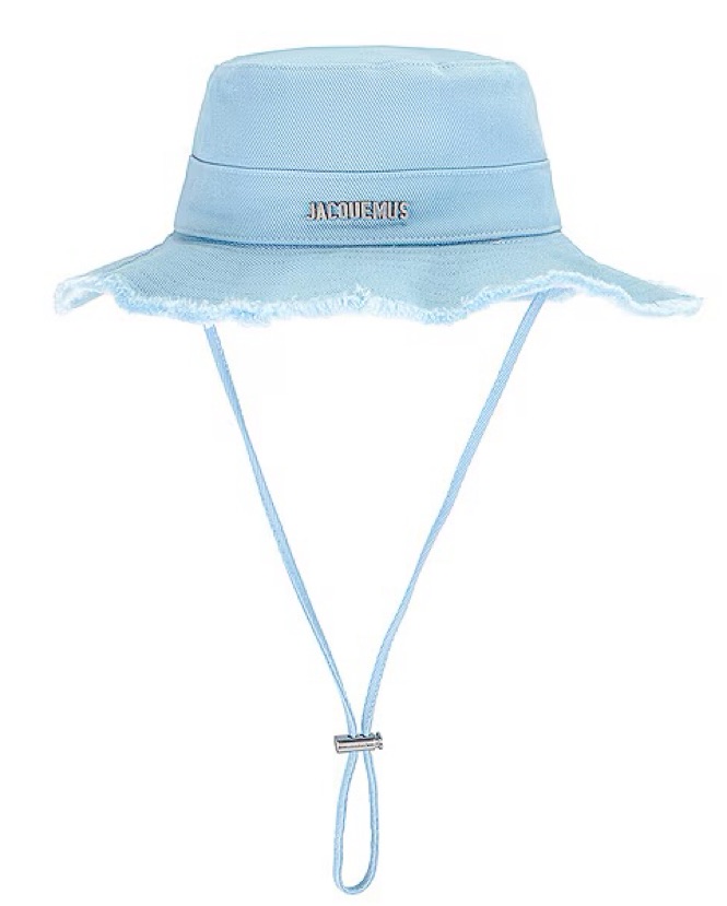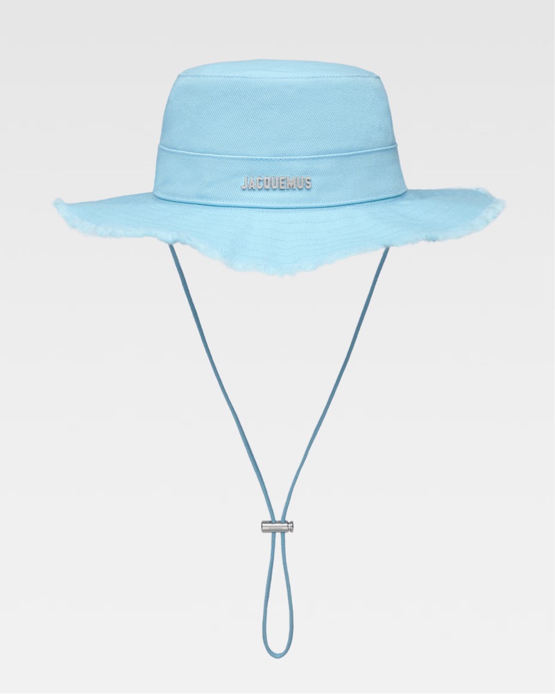This chic bucket hat is perfect for adding a touch of effortless style to any summer outfit. Whether you're running errands or heading to the beach, this versatile accessory will keep you feeling cool and looking fabulous. Le Bob Artichaut in light blue. Sold out.