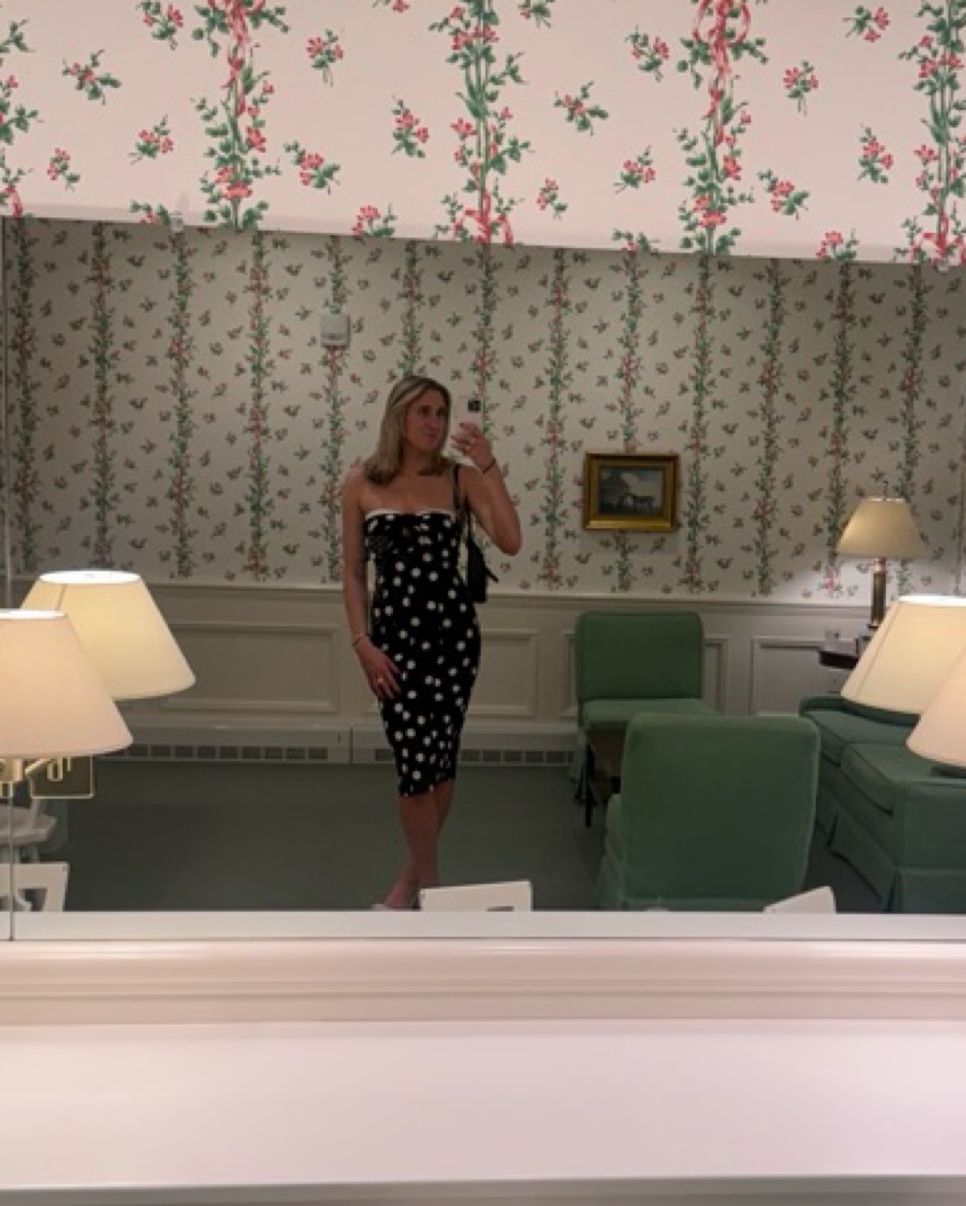 Only worn once, it’s an XS (I’m normally a medium) and it fits perfectly. It comes with straps but I like it better strapless