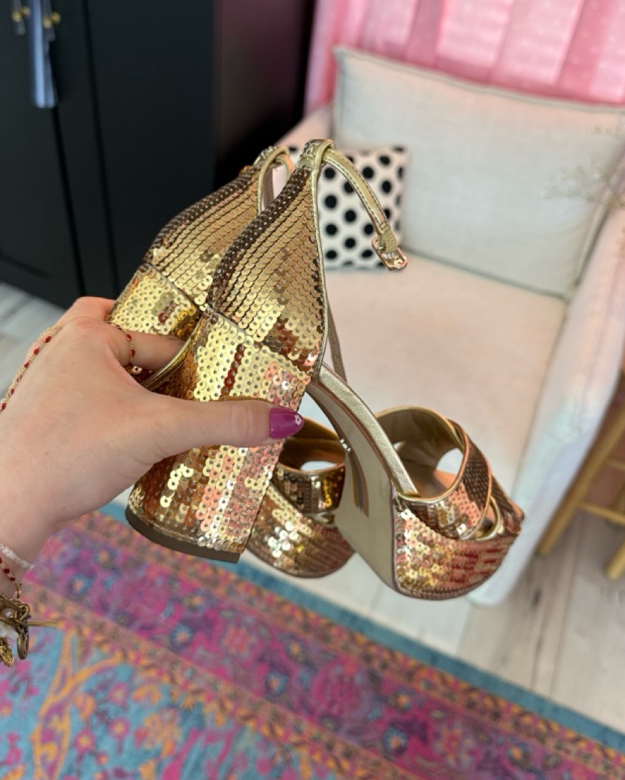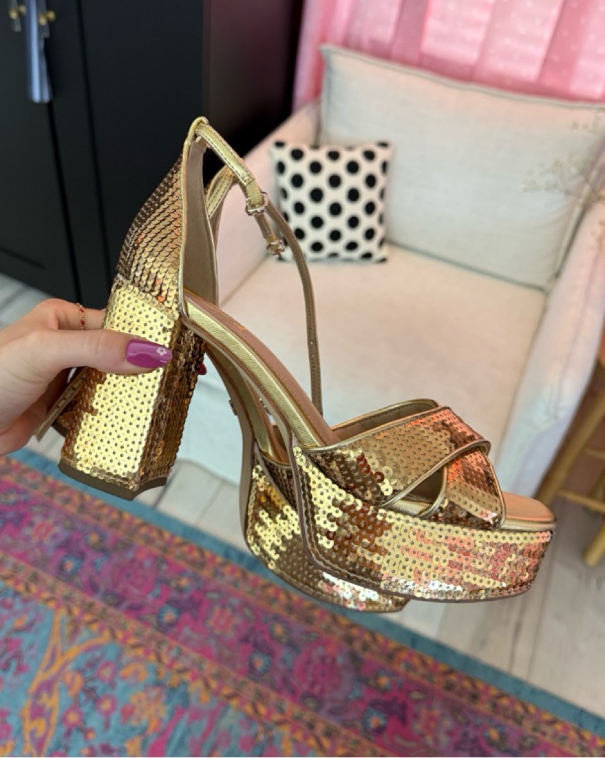 Sam Edelman Gold Sequin Platform Heels by Sam Edelman - Pickle