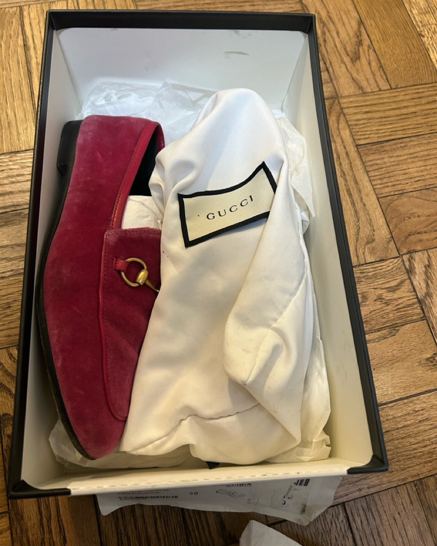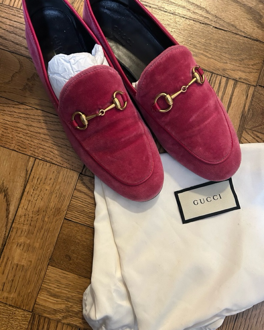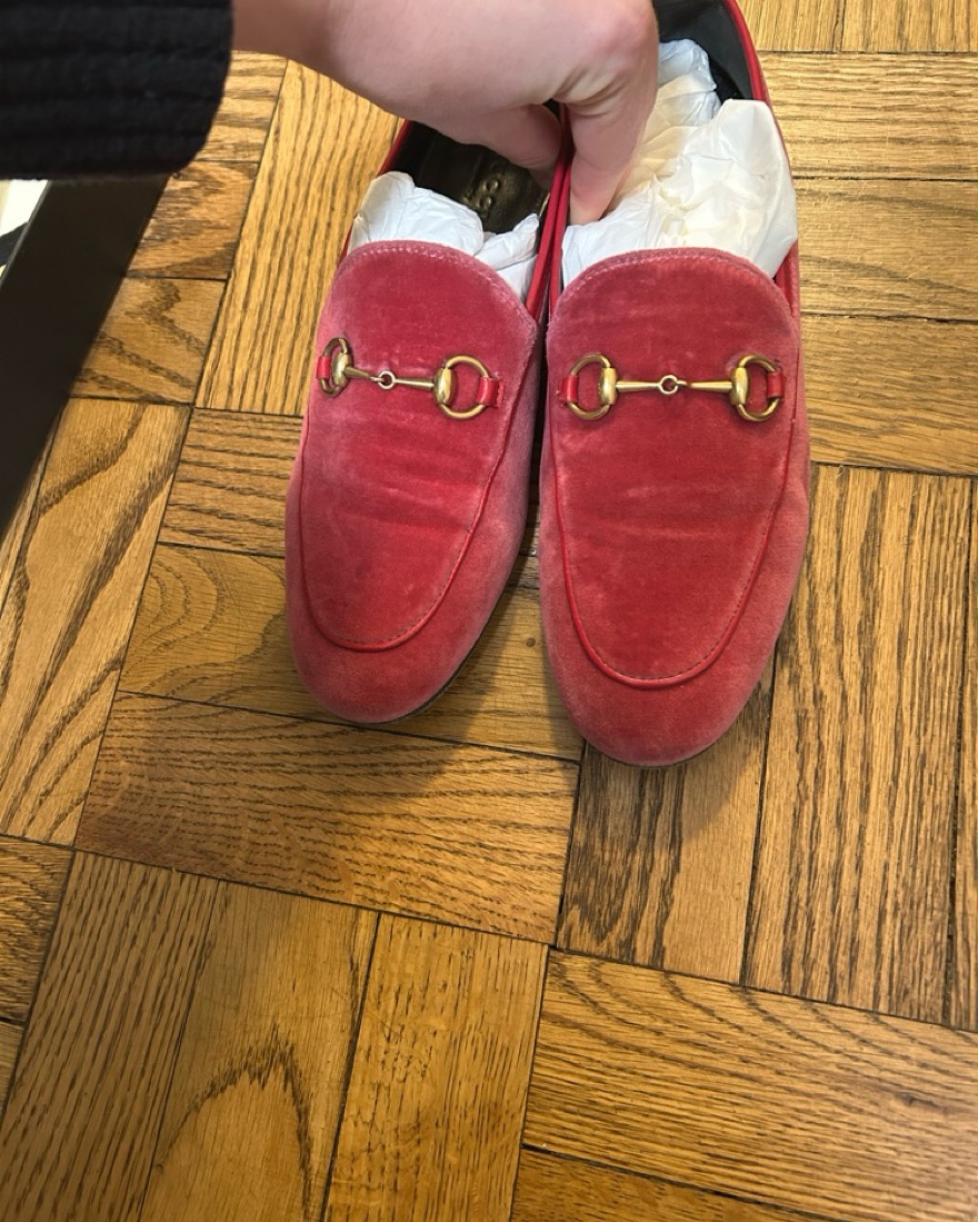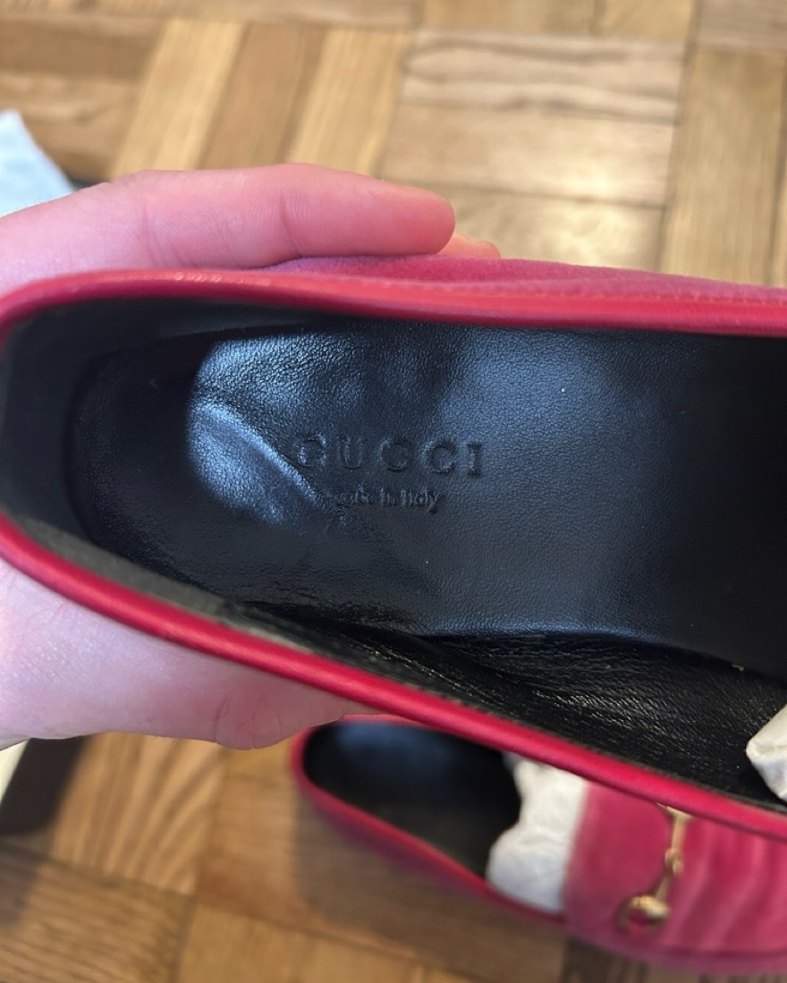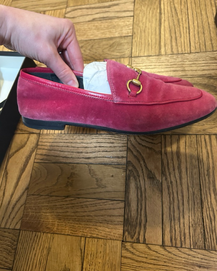 Pink/Red Velvet Gucci Loafers Size 38 by Gucci - Pickle