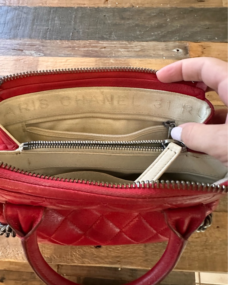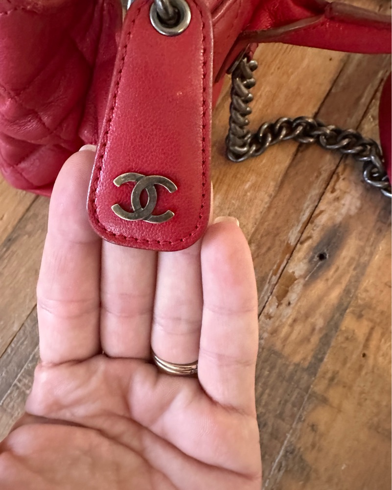 Deep red Chanel mini handbag with Gunmetal color hardware. Super soft leather and a rare piece!