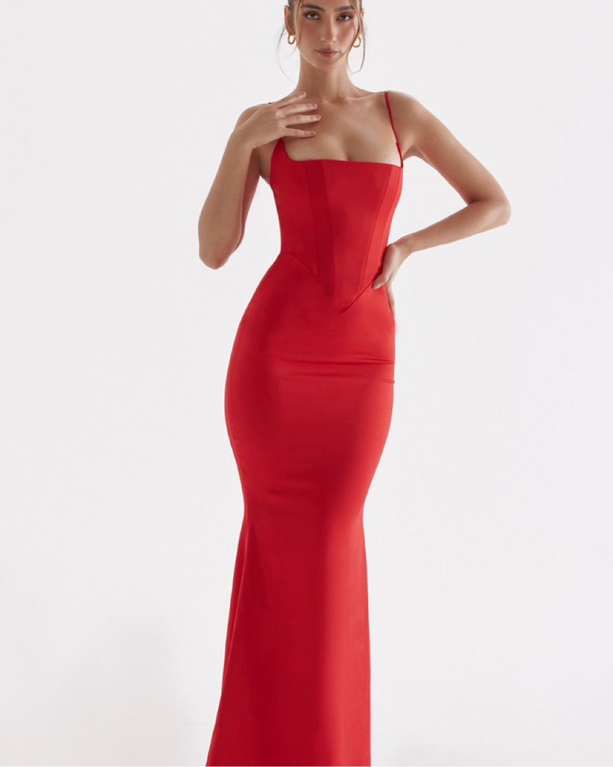 Romantic silhouettes and elegant glamour is what makes our new season collection feel so special and 'Olivette' ticks all the right boxes. Cut from our lustrous silk satin in a romantic red rose hue, 'Olivette' has a close fitting silhouette for an ultra feminine hourglass shape.