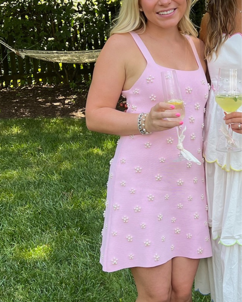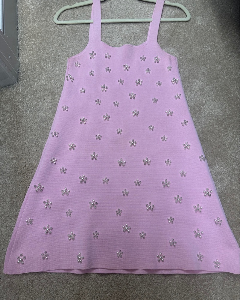 Mini pink pearl Zara dress perfect for a spring or summer daytime event!