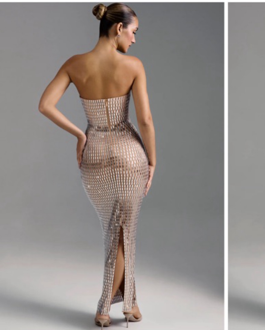 AMAYA Embellished Bandeau Maxi Dress in Almond