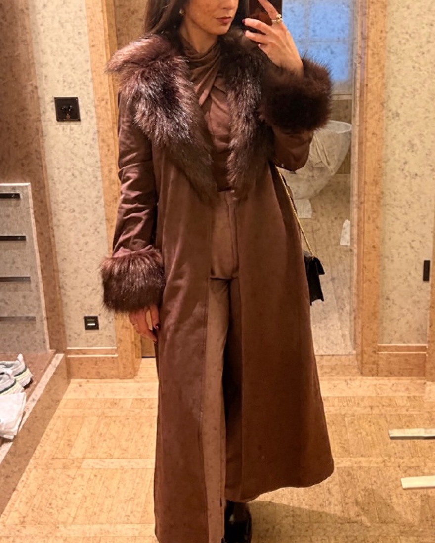 Suede base and faux fur trim