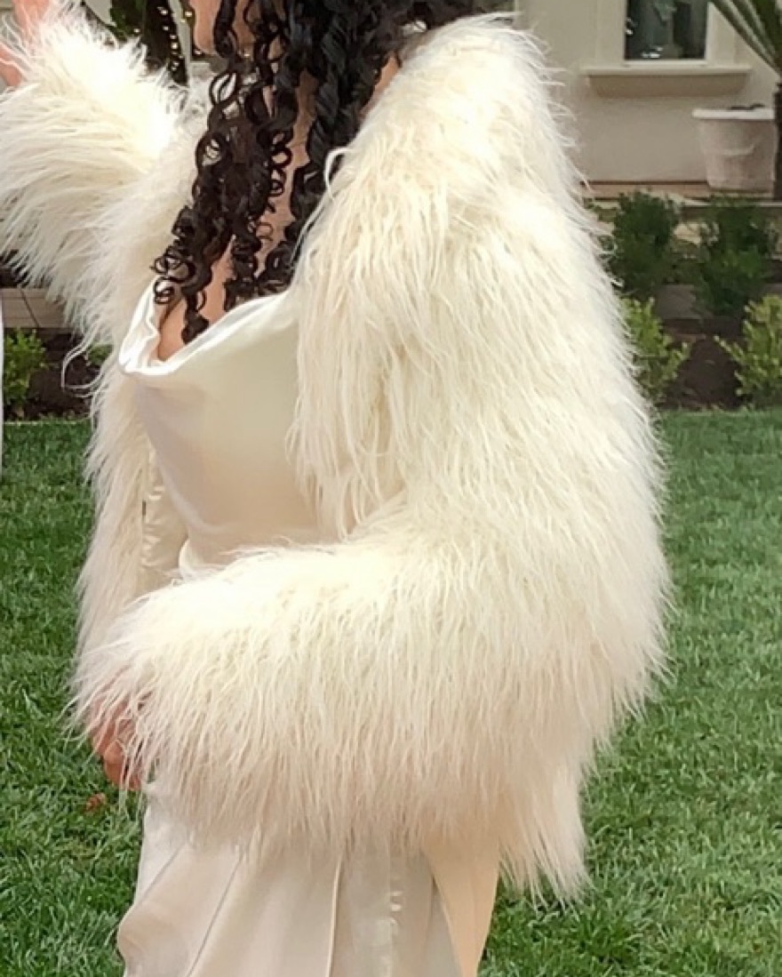 Worn once for my wedding rehearsal, faux white sheep fleece