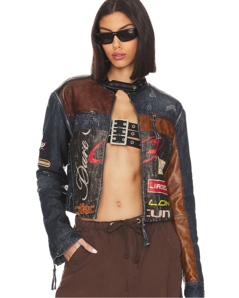 This stylish and versatile jacket is perfect for a night out or a casual weekend. The mix of denim and leather creates an edgy, cool-girl look that can be dressed up or down.