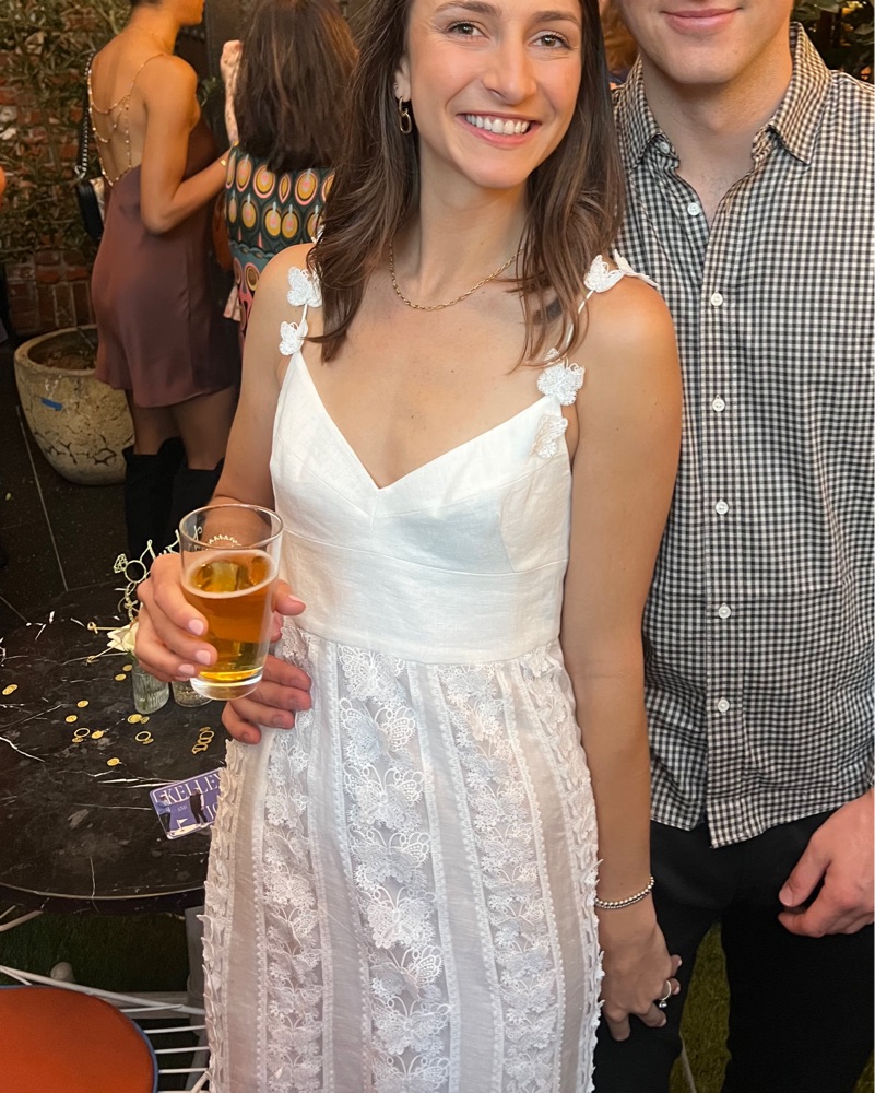 Brand new, only worn once. The butterfly details are stunning! Zimmerman size 1 which is equivalent to a S/M. I don’t think they’re selling this anymore - I can’t find a picture online!