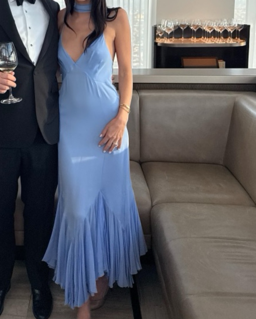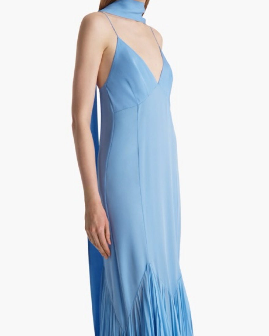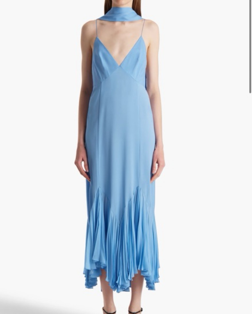 KHAITE Candita dress in cornflower blue, size 2. Includes neck scarf. Please treat with care. Damages will be charged