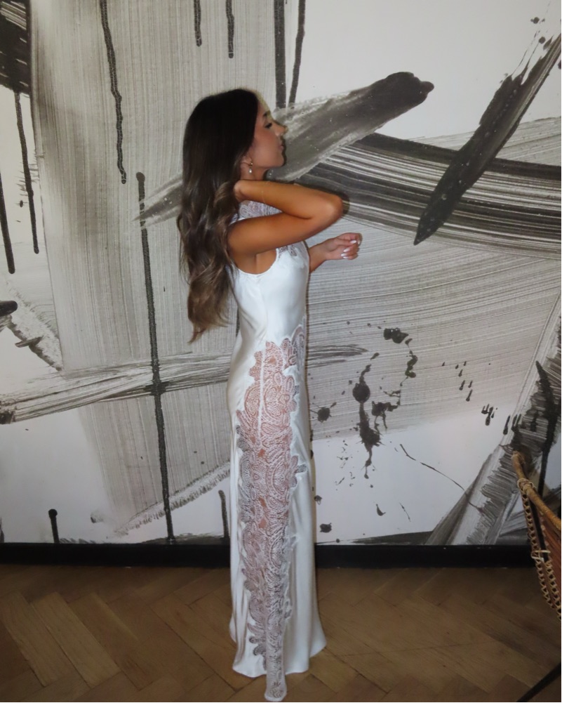 Shona Joy High-Neck Stratus Lace Maxi Dress! So elegant and stunning perfect for bridal events. Please no washing, I will handle all dry cleaning since it is such a delicate dress.