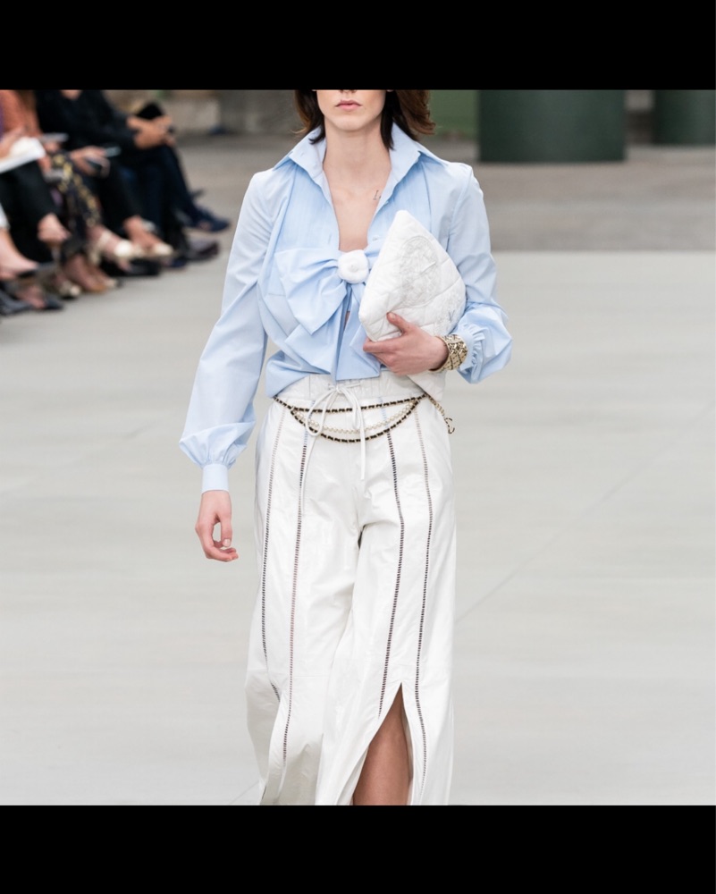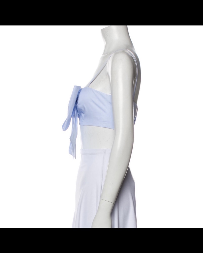 Look 49 from Cruise '20, cropped top with square neckline, thin straps, large bow detail. Three buttons in back. FR36 Bust 29.5 Waist 26