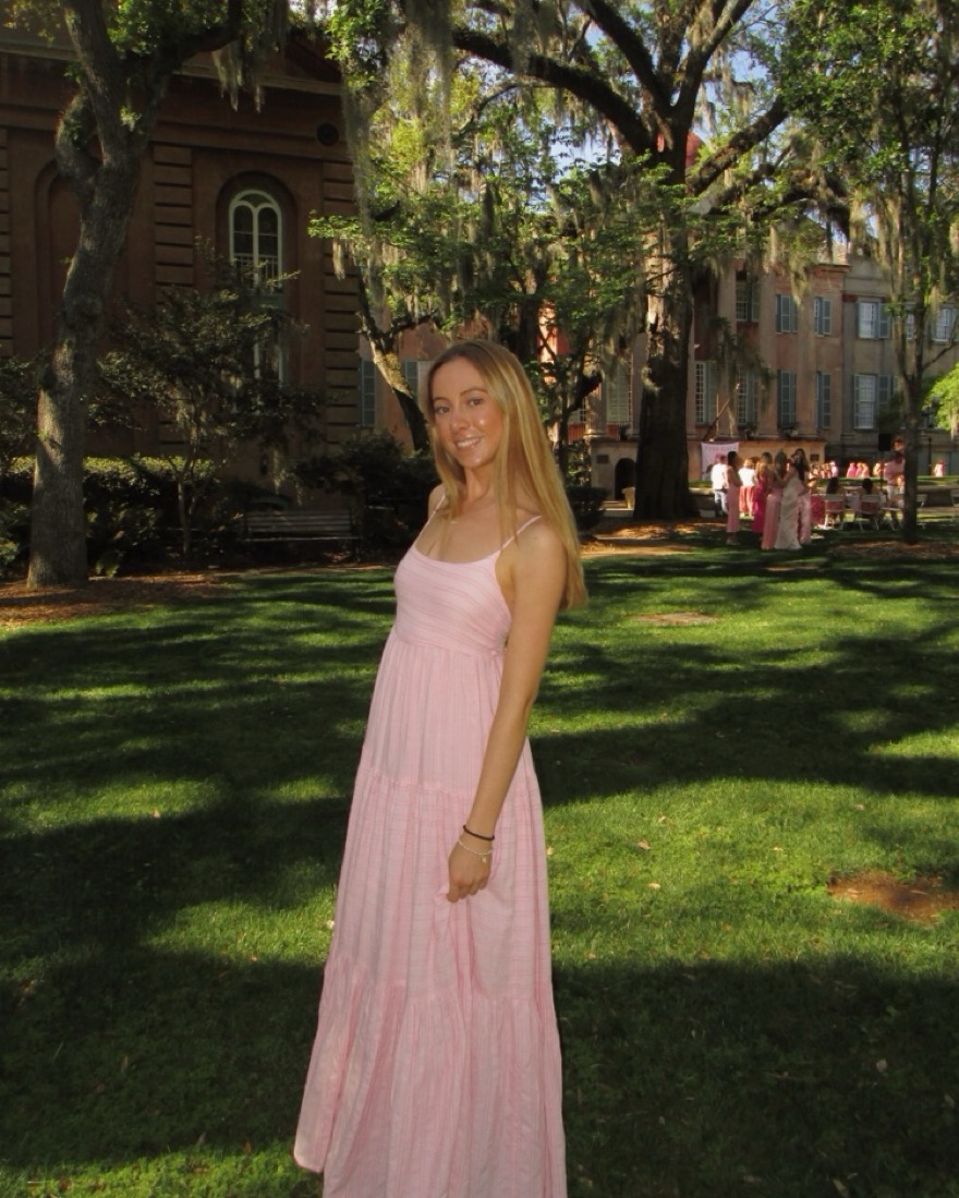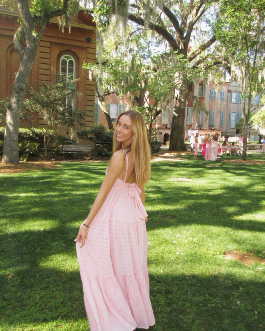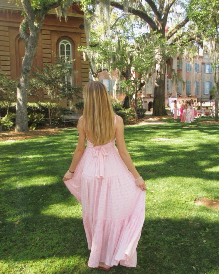 Maxi pink dress with bow in the back, super flowy and perfect for summer or a wedding