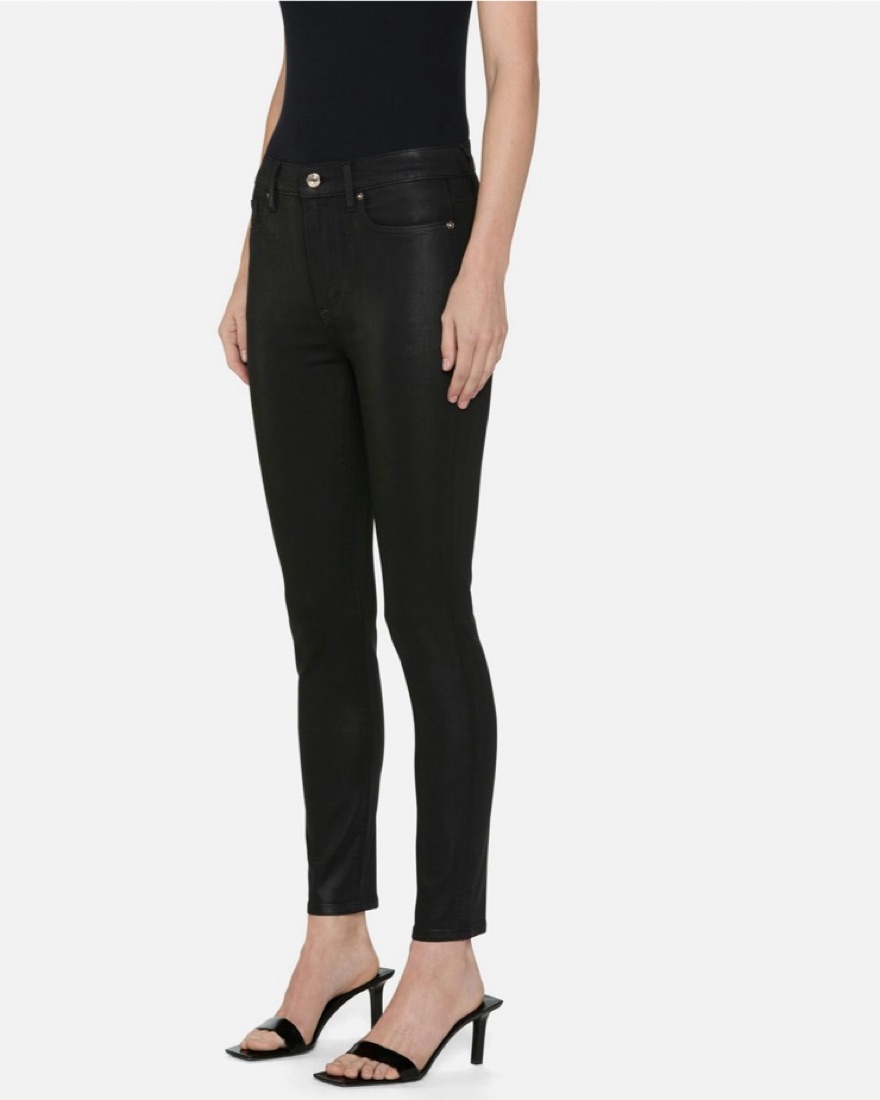 Size 24 frame black coated jeans | high rise | super stretch denim