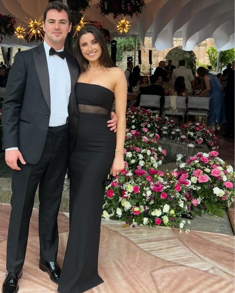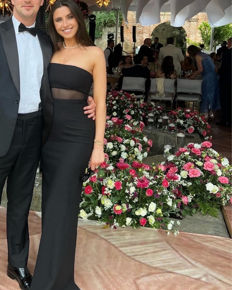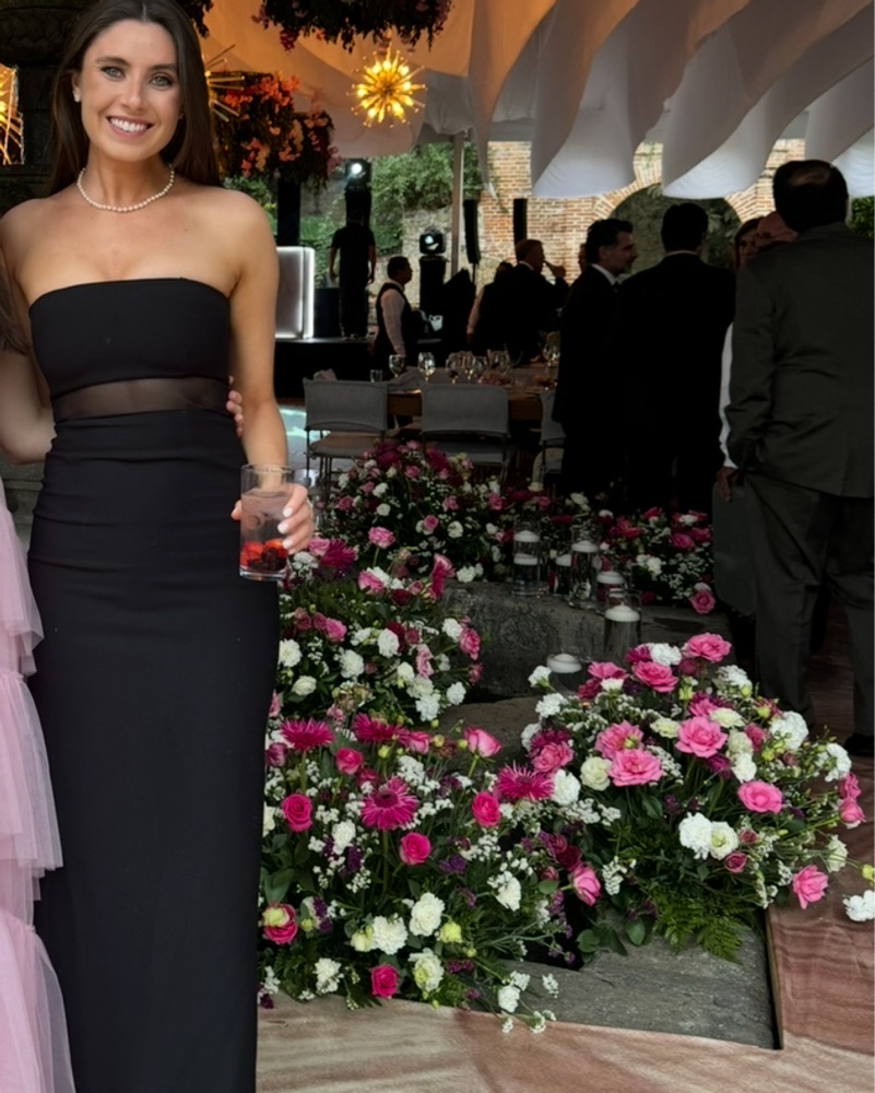 This sleek strapless dress is perfect for a formal event or black tie wedding.