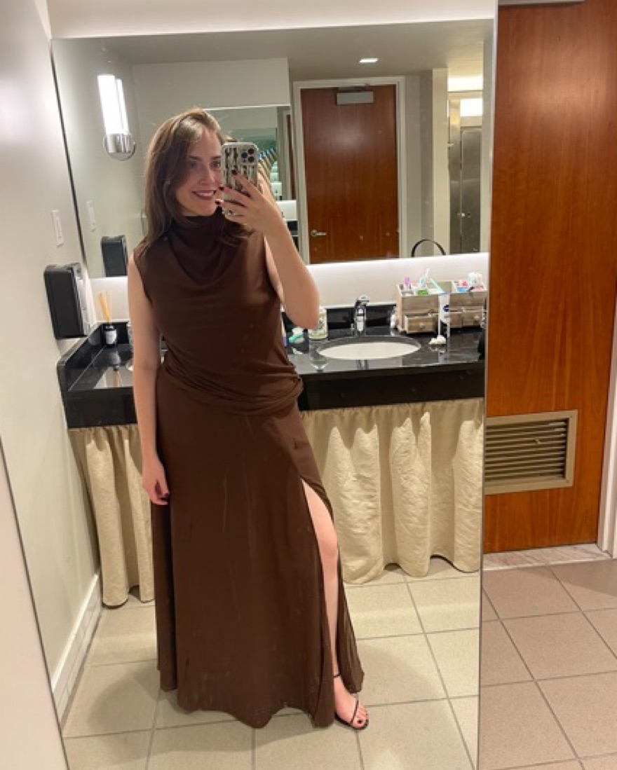 New, only worn once! Very flattering and comfortable. I’m generally an 8-10 in dresses and the Medium fit great.