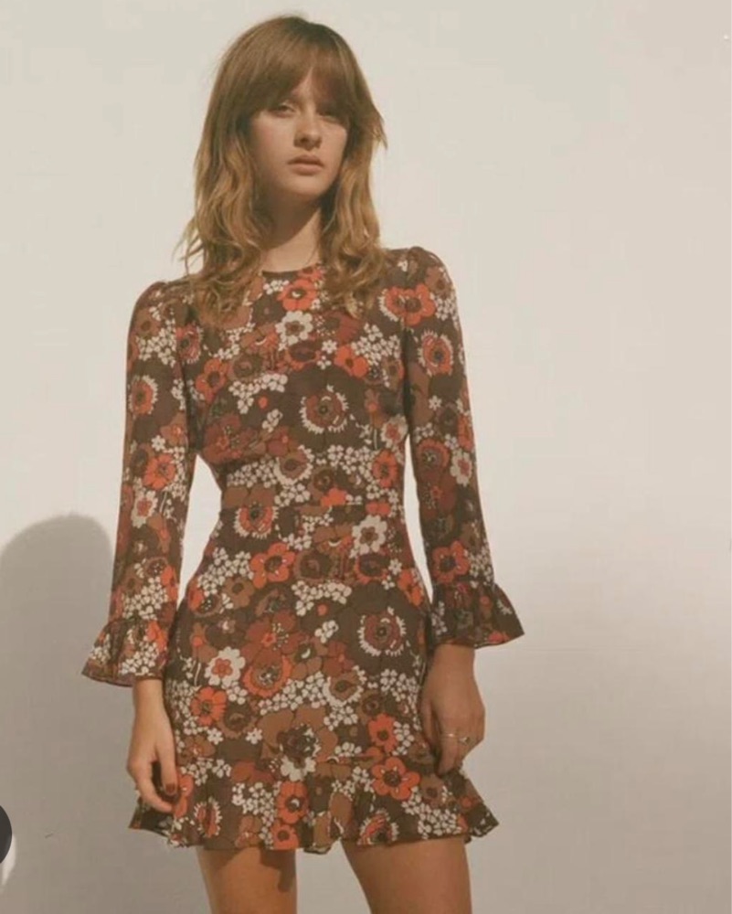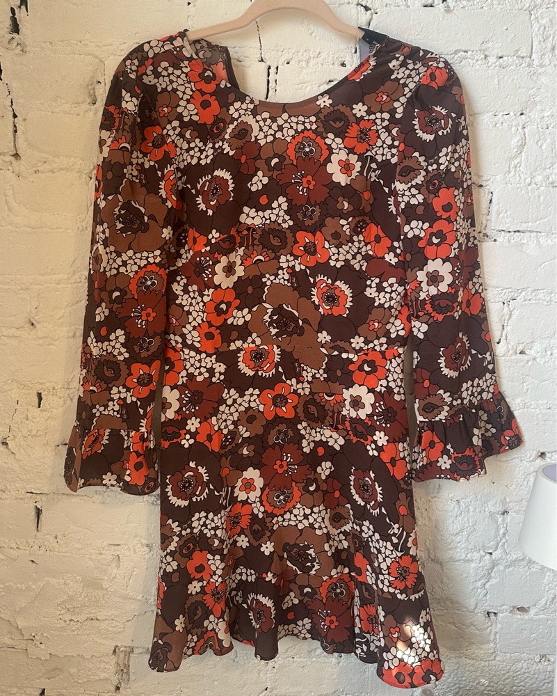 Mary Jane Dress from Realisation Par in “Shrooms” pattern 🤎🍄🟫 🧡 such a fun print, 100% silk and gives major 70s vibes! They no longer sell this dress so it’s a rare Realisation piece