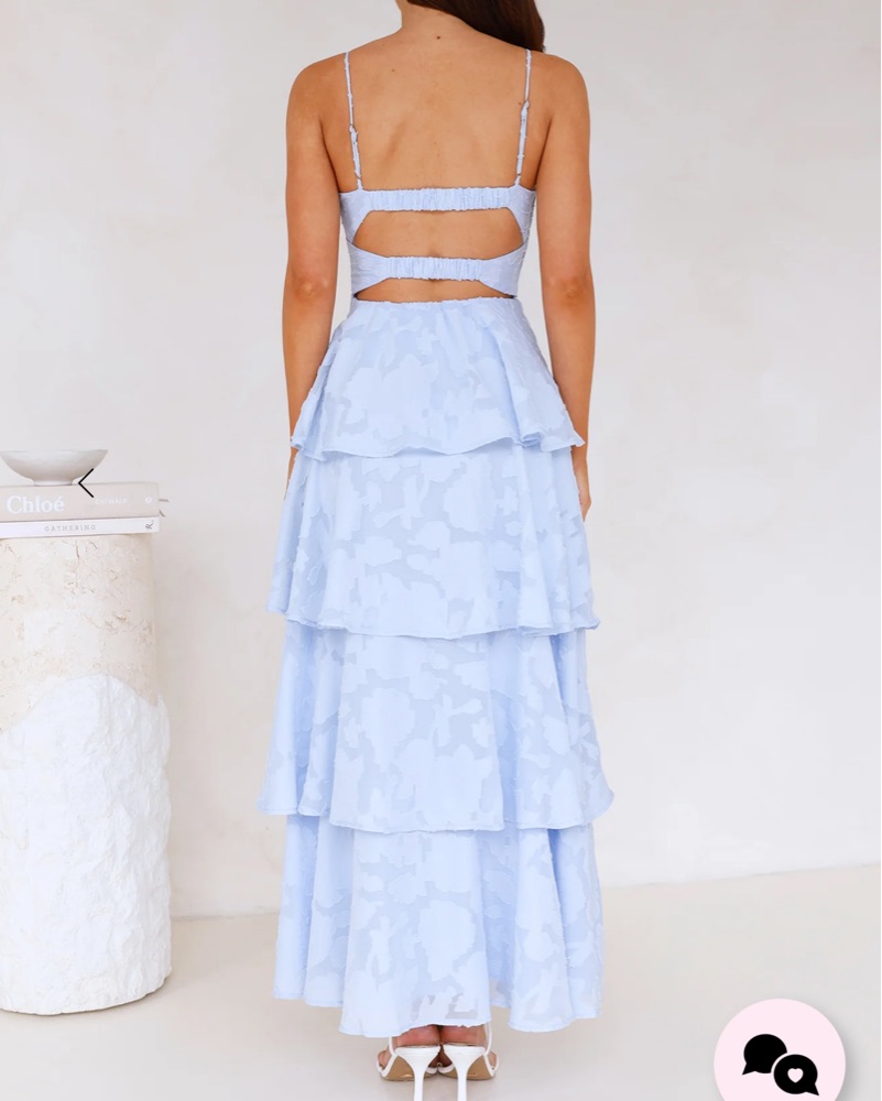 Blue long maxi dress perfect for any occasion! This can be dressed up as a wedding guest dress or down as a beachy look. It’s so comfortable and has adjustable straps! The tiers make it so flowy and it has a lot of movement so it loved so cute in pictures and dancing! #maxidress #blue #wedding