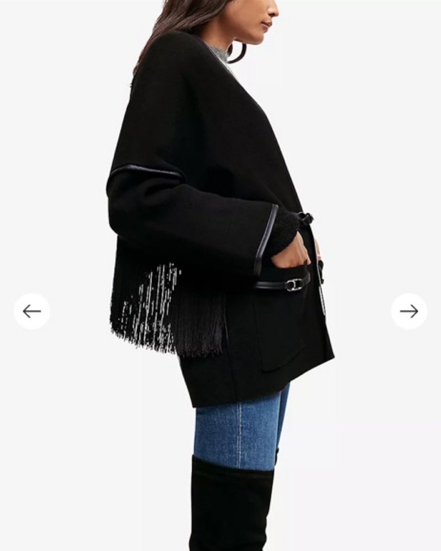 Very chic fringe black cardigan with belt, bought in Paris, size S