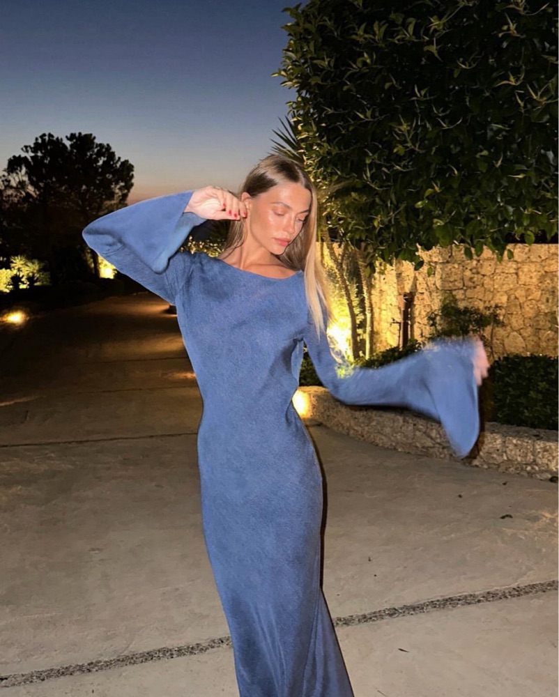 The Gia long sleeve silk maxi dress in denim by Realisation Par. Super cute. Size small (equivalent to US 4 on their website). Perfect for date nights, weekend trips, etc. Pick up in noho from doorman building.