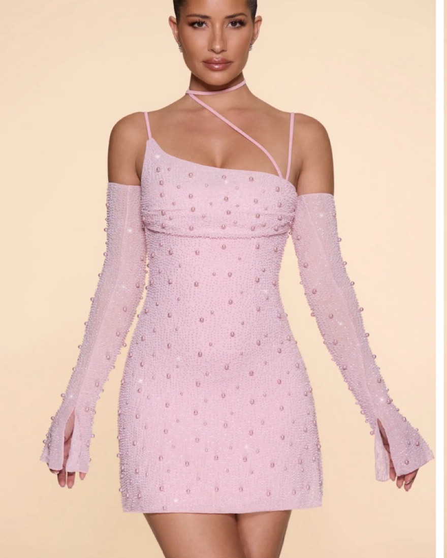 Oh Polly Pink Mini Dress With Gloves by Oh Polly - Pickle