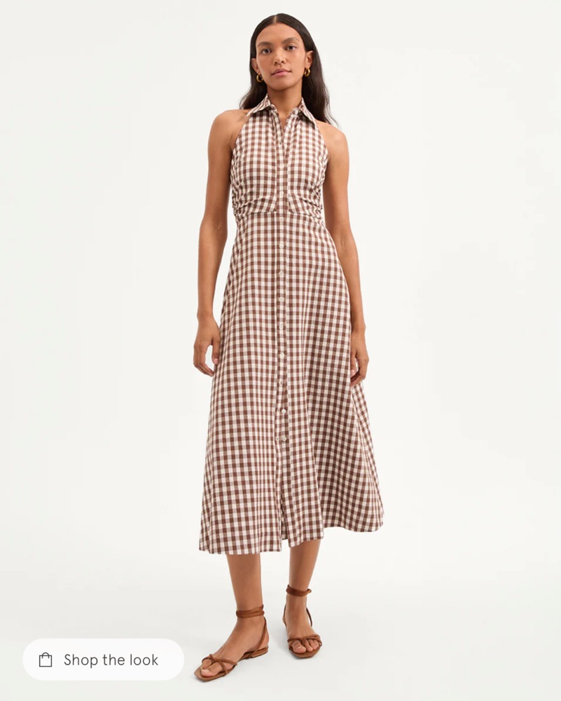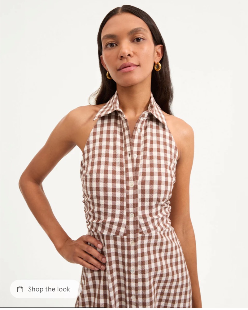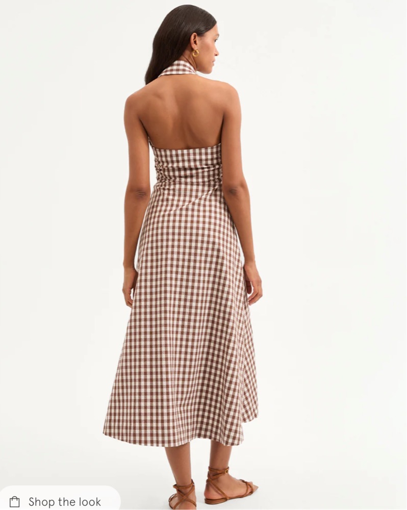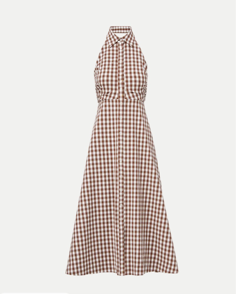 NEW SEASON! Halterneck, gingham brown cotton dress perfect for summer events and day to day. Brand new - please take care of it!!! Tags: Doen, Tory Burch, Hill House, Bernadette, Khaite, Pucci, Cult Gaia