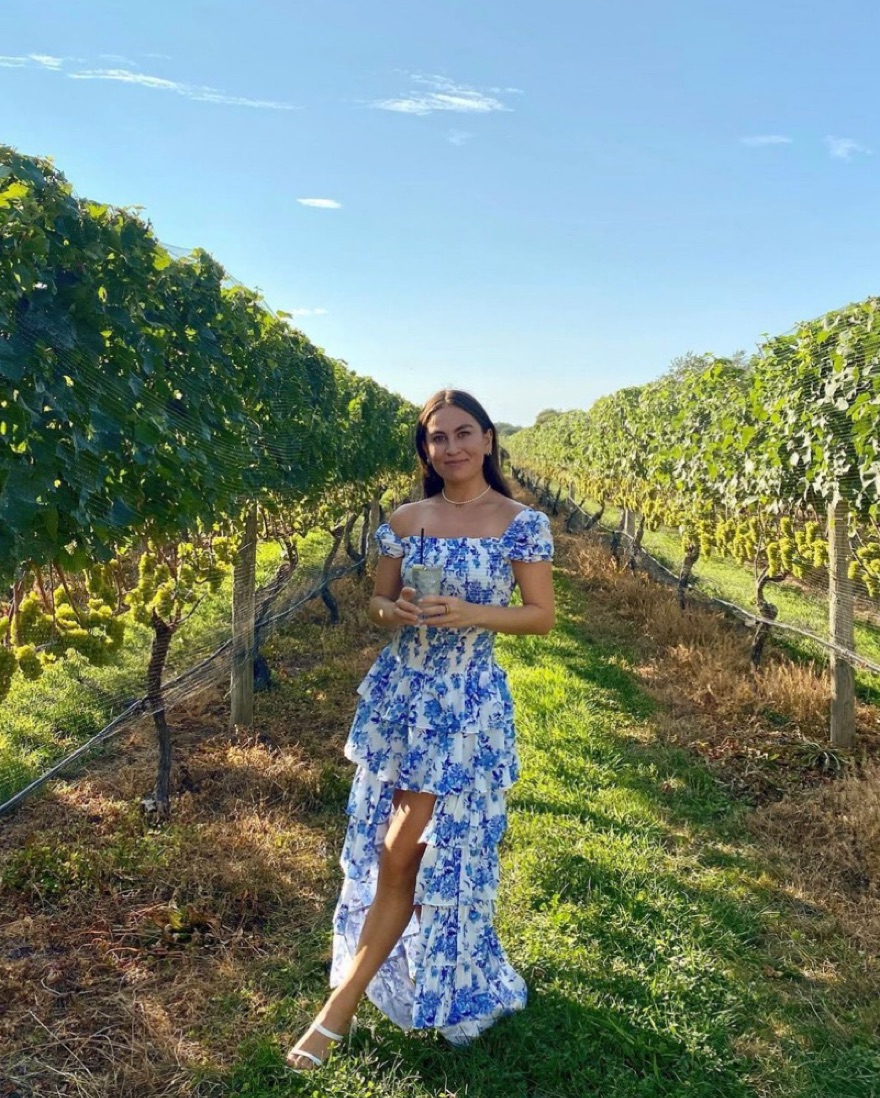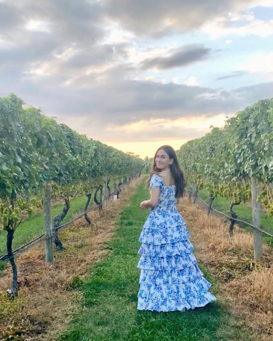 CAROLINE CONSTAS MALTA GOWN BLUE & WHITE