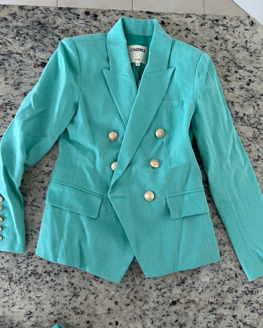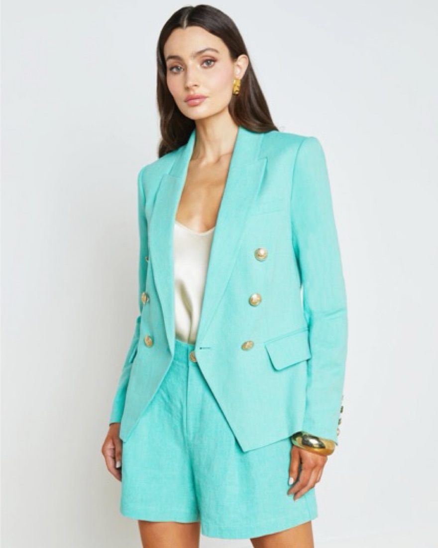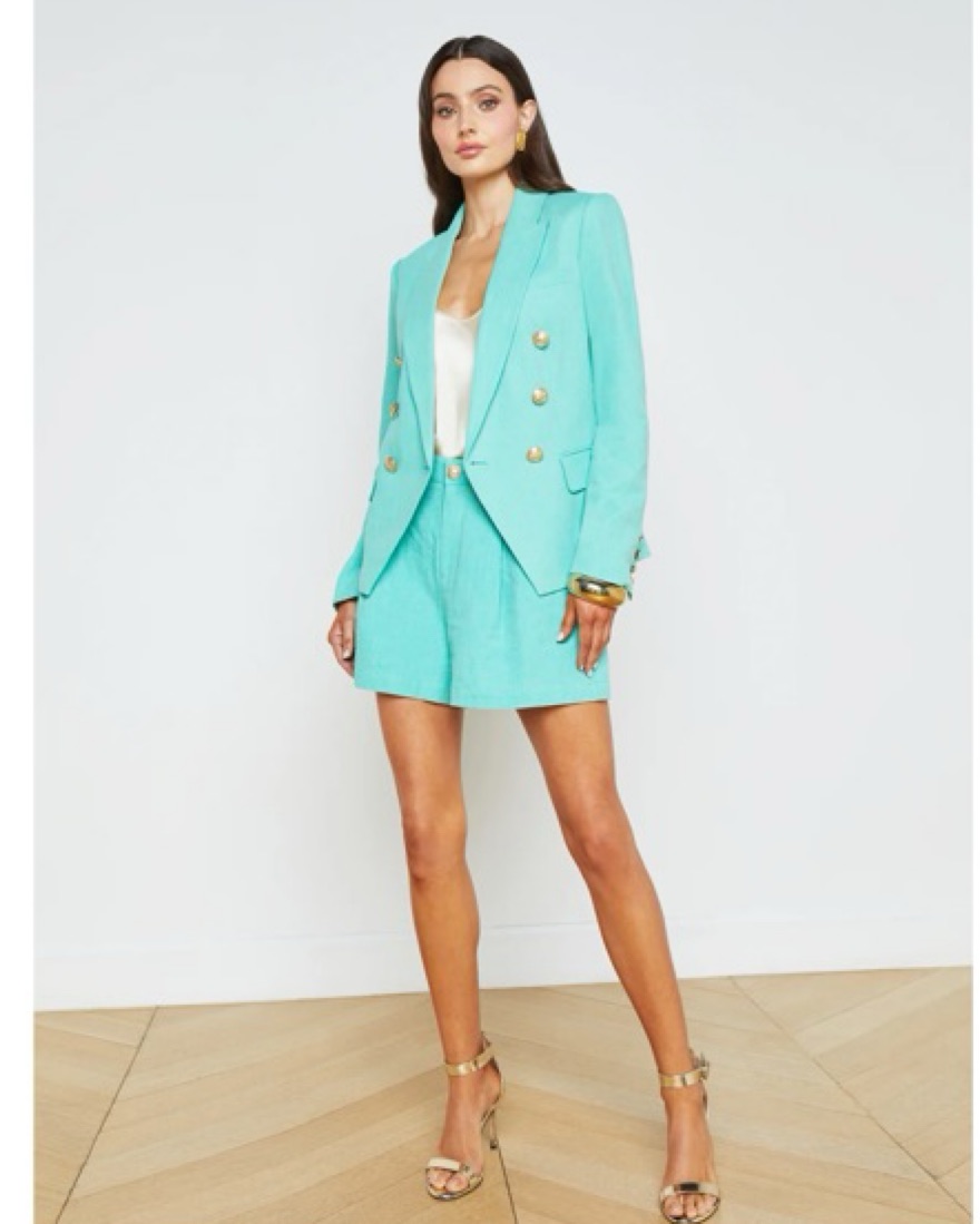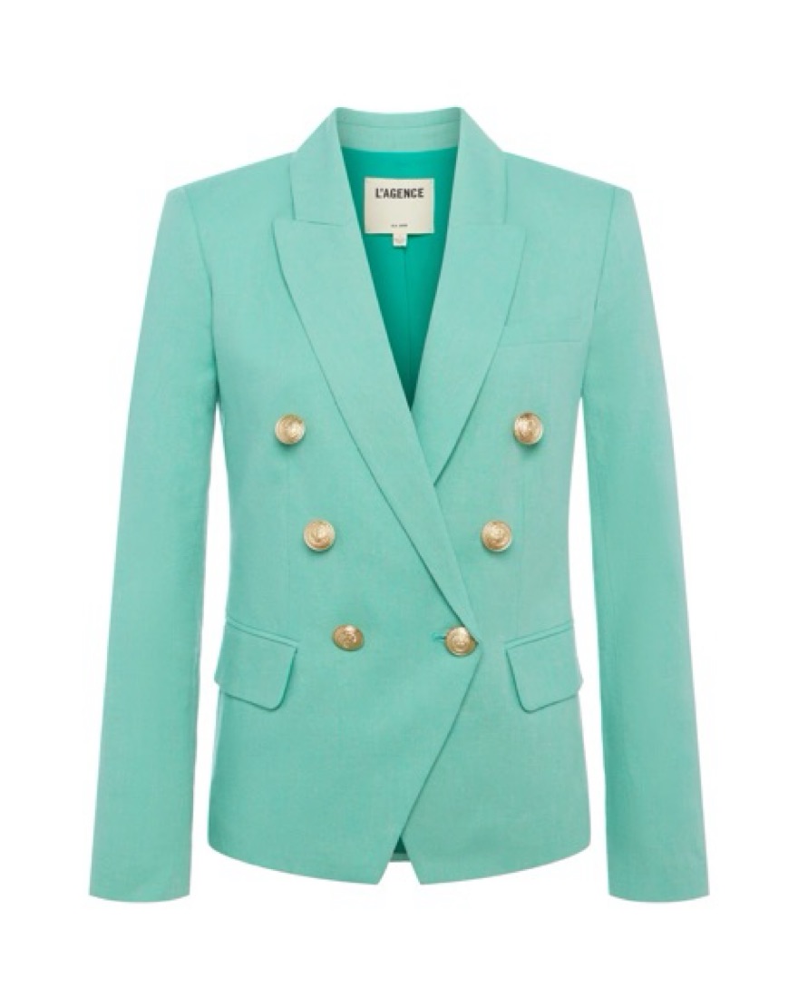 Our super-sculpted Kenzie blazer is a L’AGENCE classic and a bestseller season after season. The classic double-breasted style features a nipped-in waist to accentuate the figure, peaked lapels, and flap pockets. Fully lined, this style is finished with our signature embossed-dome buttons. Wear with