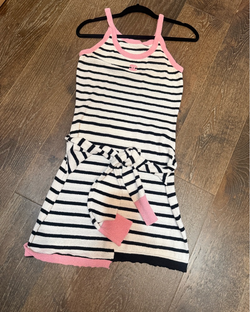 Chanel terry cloth tank dress perfect for beach cover up or vacation to st Barths it’s a dupe but perfect