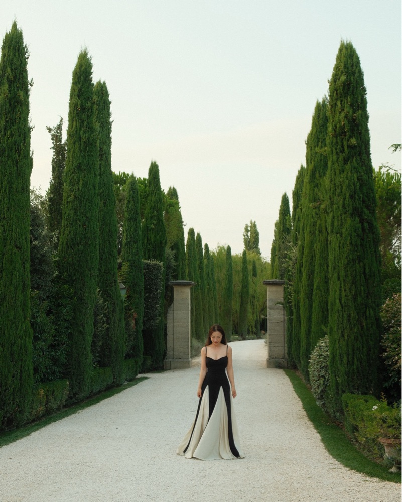 Please dry clean before returning. Extremely flattering dress. The design is especially stunning in movement. Would love for others to be able to enjoy this dress. Bust 33” waist 26”. Please wear high enough heels so the bottom of the dress is not dragged on the floor