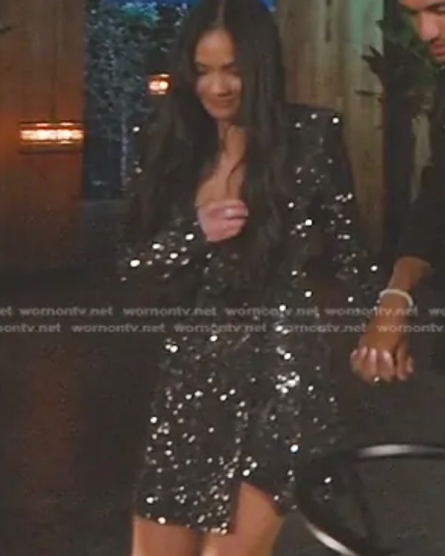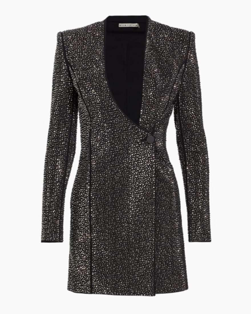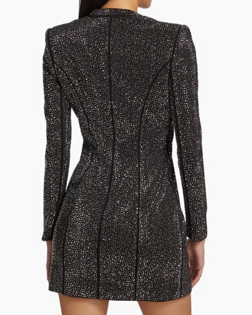 As seen on Jenn Tran on her season of the bachelorette. Alice + Olivia Guenda black fix rhinestone blazer mini dress. This dress is major! The pictures absolutely dont do the sparkles justice. Size 4 but runs small, id say closer to a 2 or 0