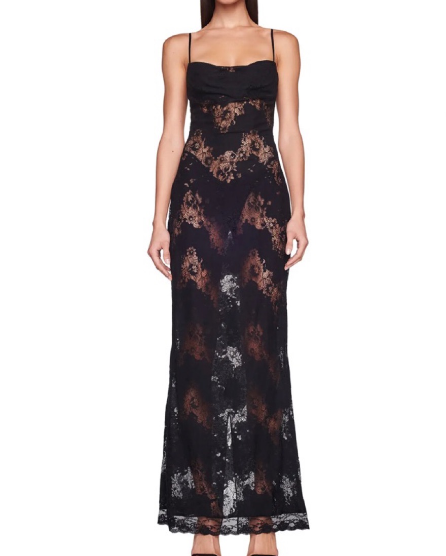 Black, lacey long dress. Perfect for a night out with the girls, doesn’t feel too see through like most lacey dresses