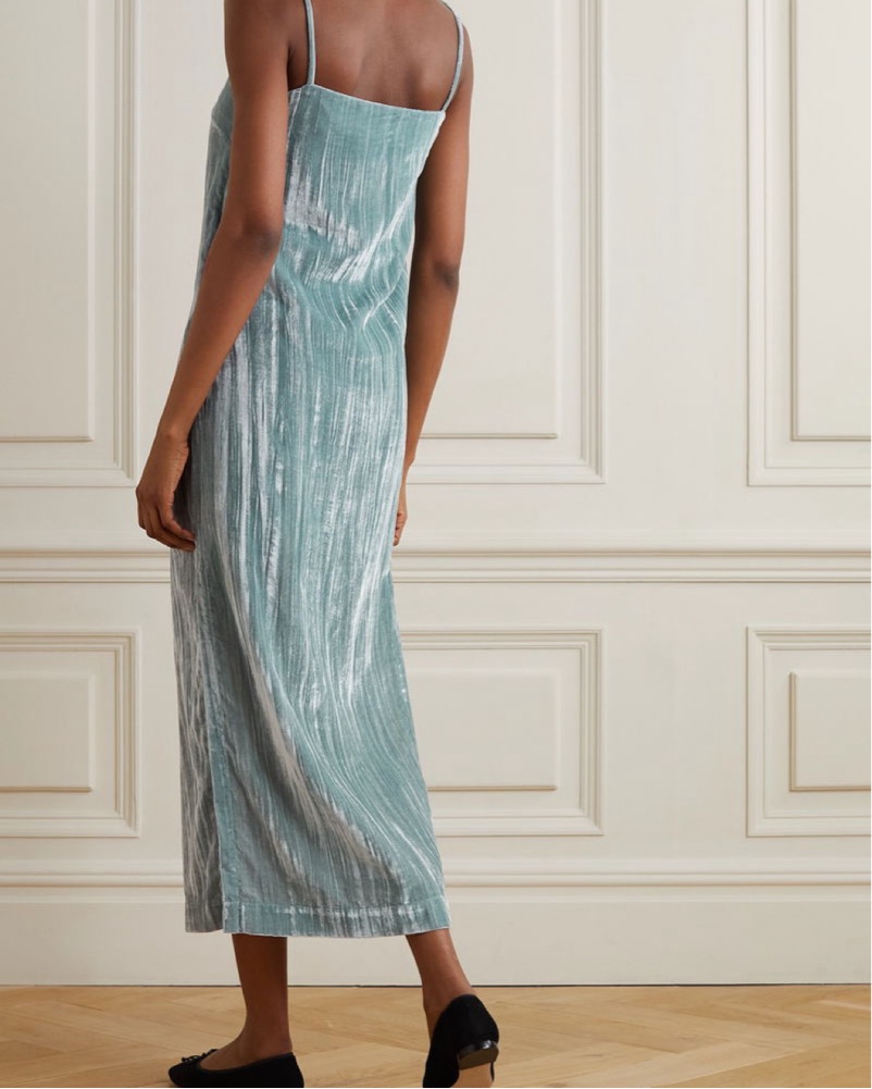 Finished in soft velvet, Loulou Studio's stunning slip dress features a sharp straight neck framed by thin fixed straps.