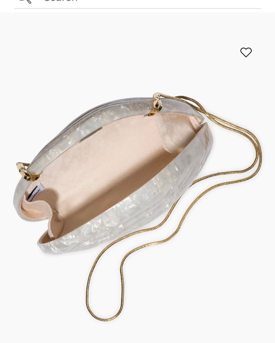 White shell clutch, perfect for bridal events, wedding guest, and beach looks! Perfect condition. Also has gold chain
