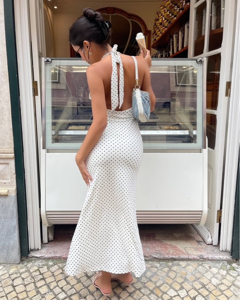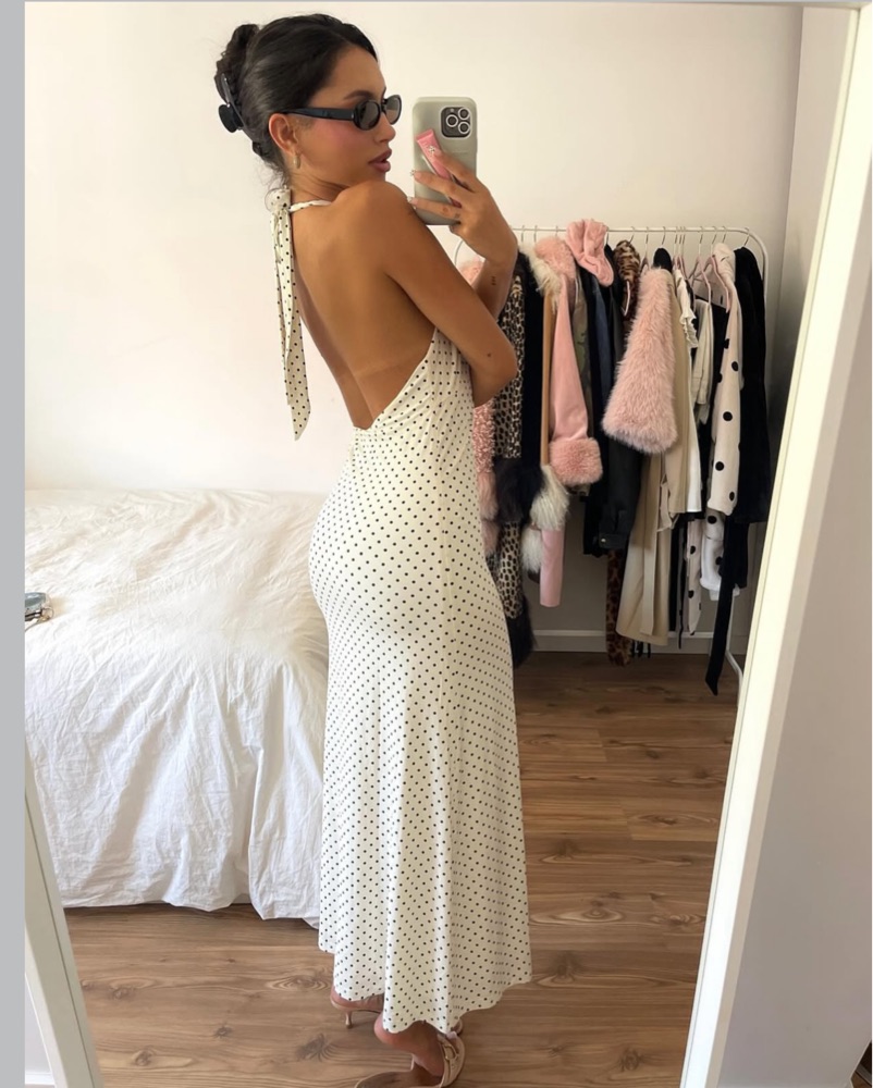 NWT!! Maude Dress is a halter neck midi dress with a self-tie strap, featuring a center-front twist detail and a fully lined finish. Summer polka dot dress. Similar to realization par Sadie dress. This is a super soft material so flattering and comfy! 🥰