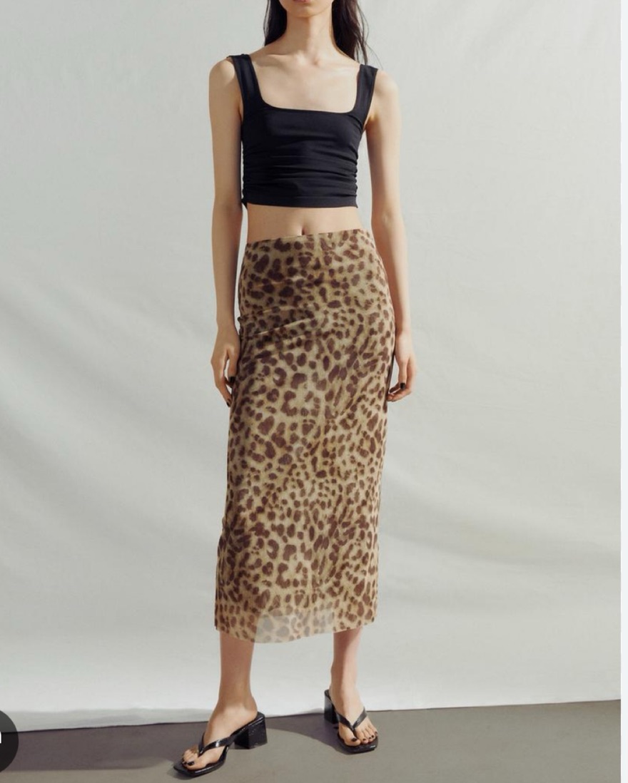 Comfortable mesh leopard print maxi/midi skirt.