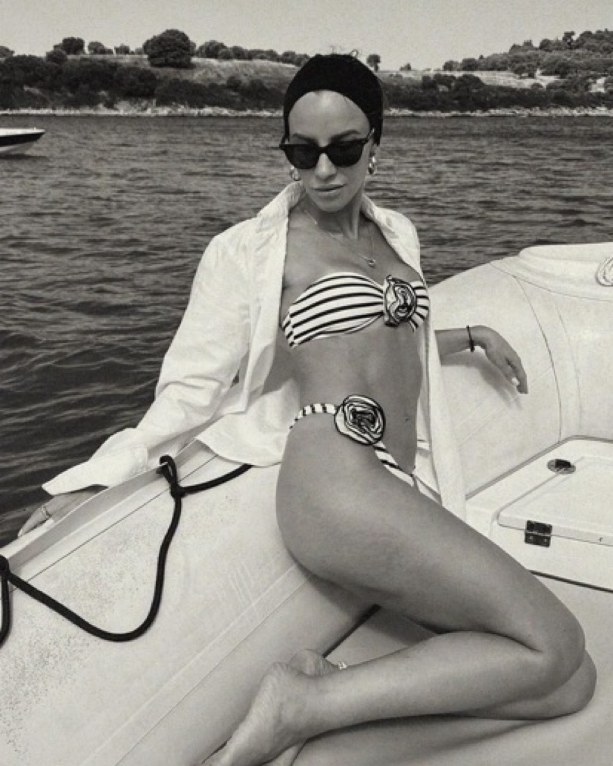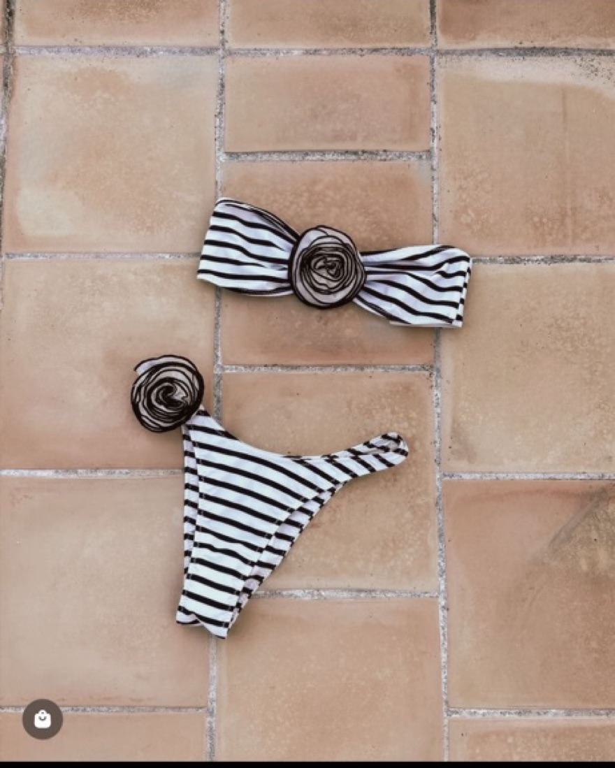 Sold out beautiful bikini, top: large , bottoms: small. Black and white stripes