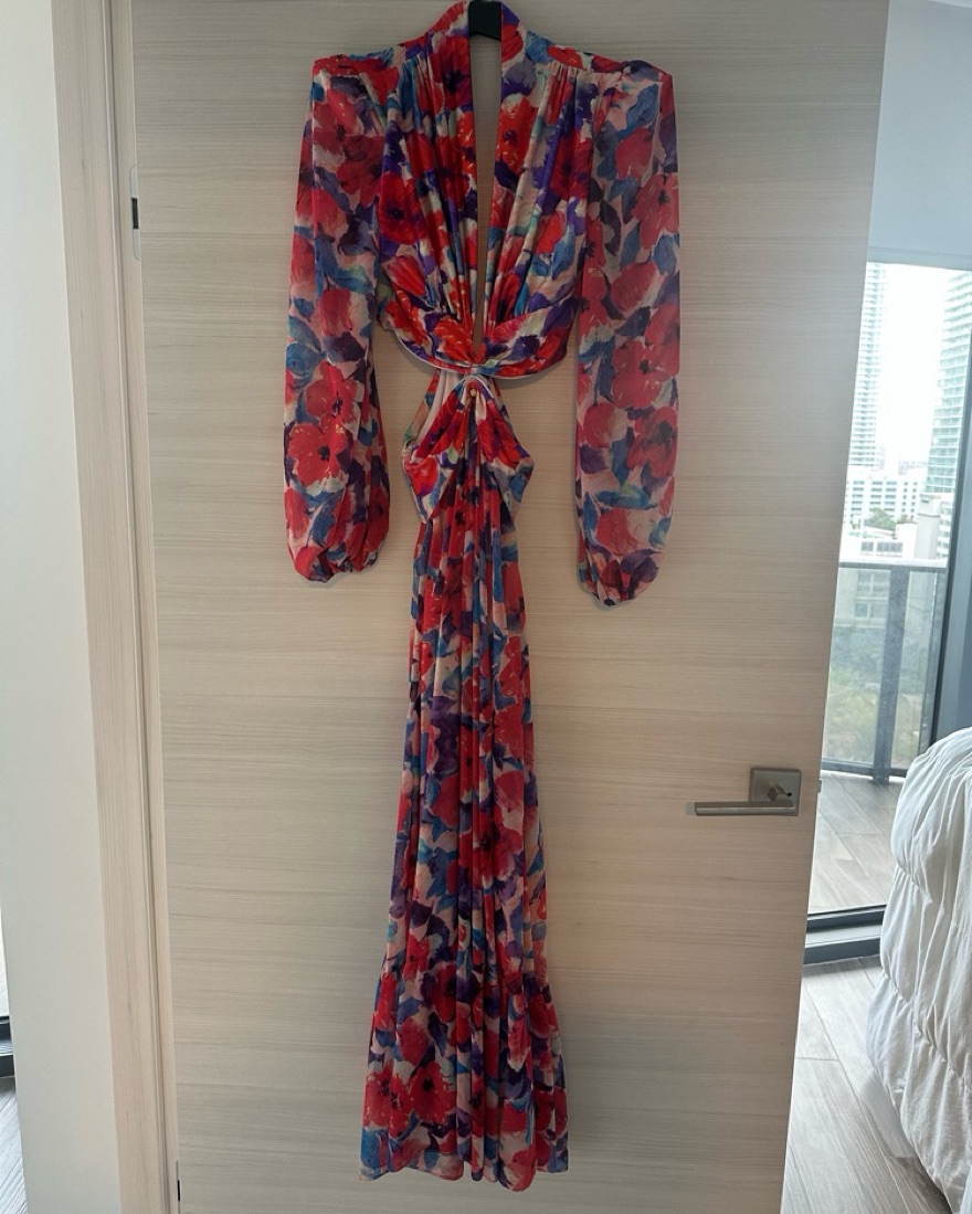 This stunning maxi dress features a vibrant floral print that is perfect for a night out or special occasion.