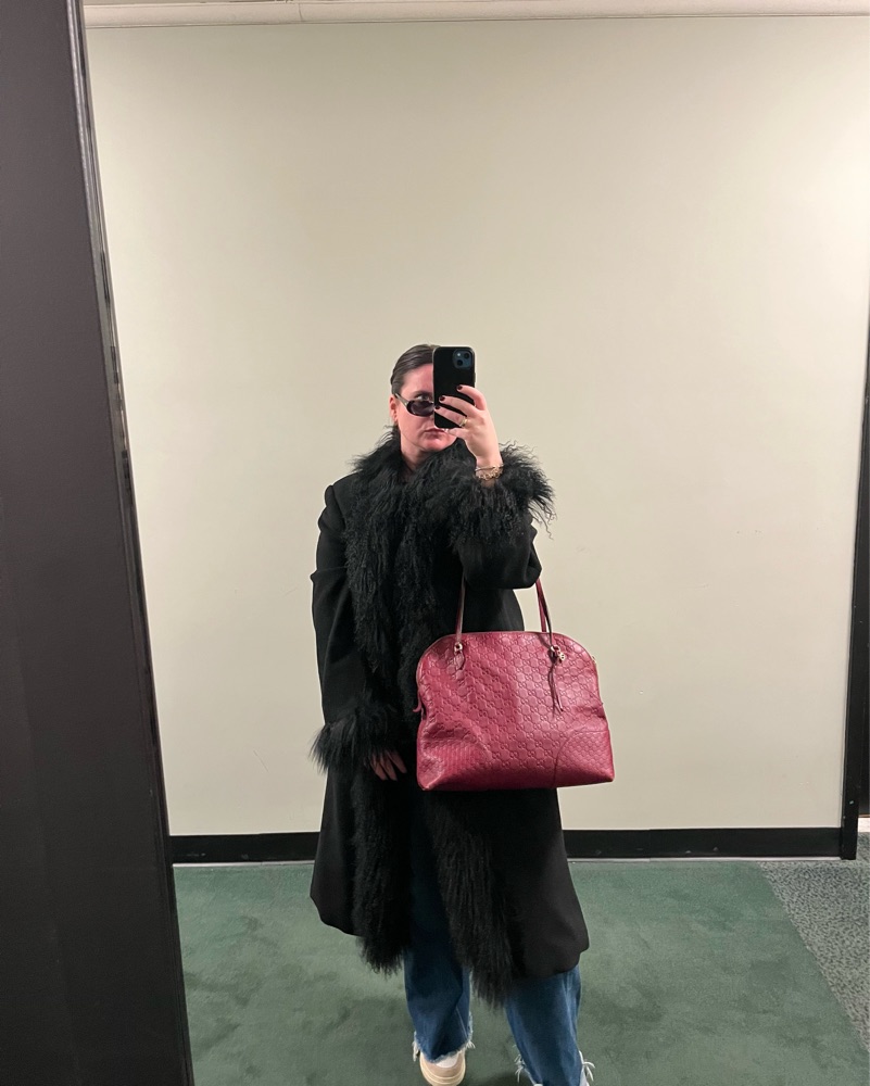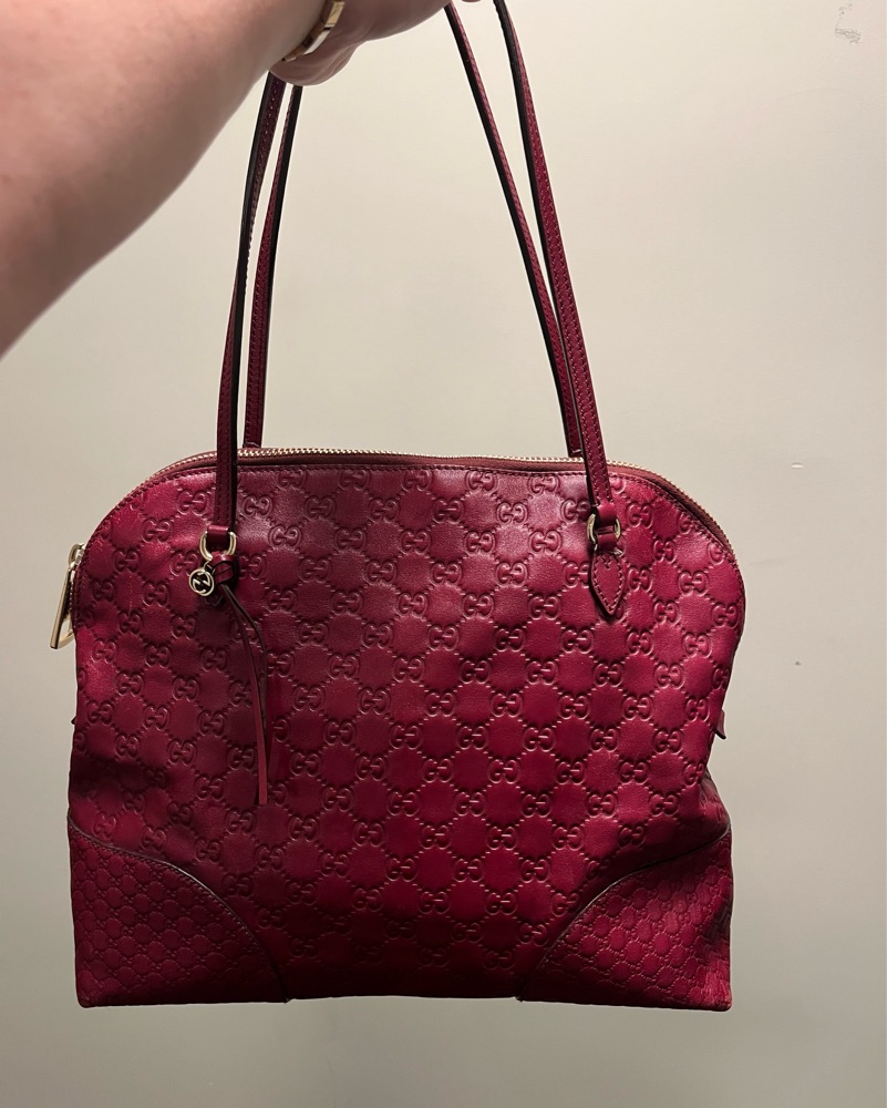 This premium tote bag is crafted from rich burgundy-hued leather, exuding sophistication and timeless style. It's the perfect accessory to elevate any outfit for a night out or a day of errands.