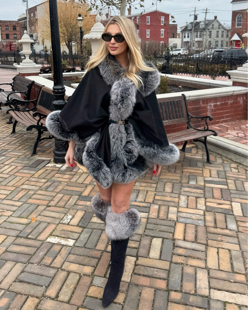 Black And Gray Fur Cape